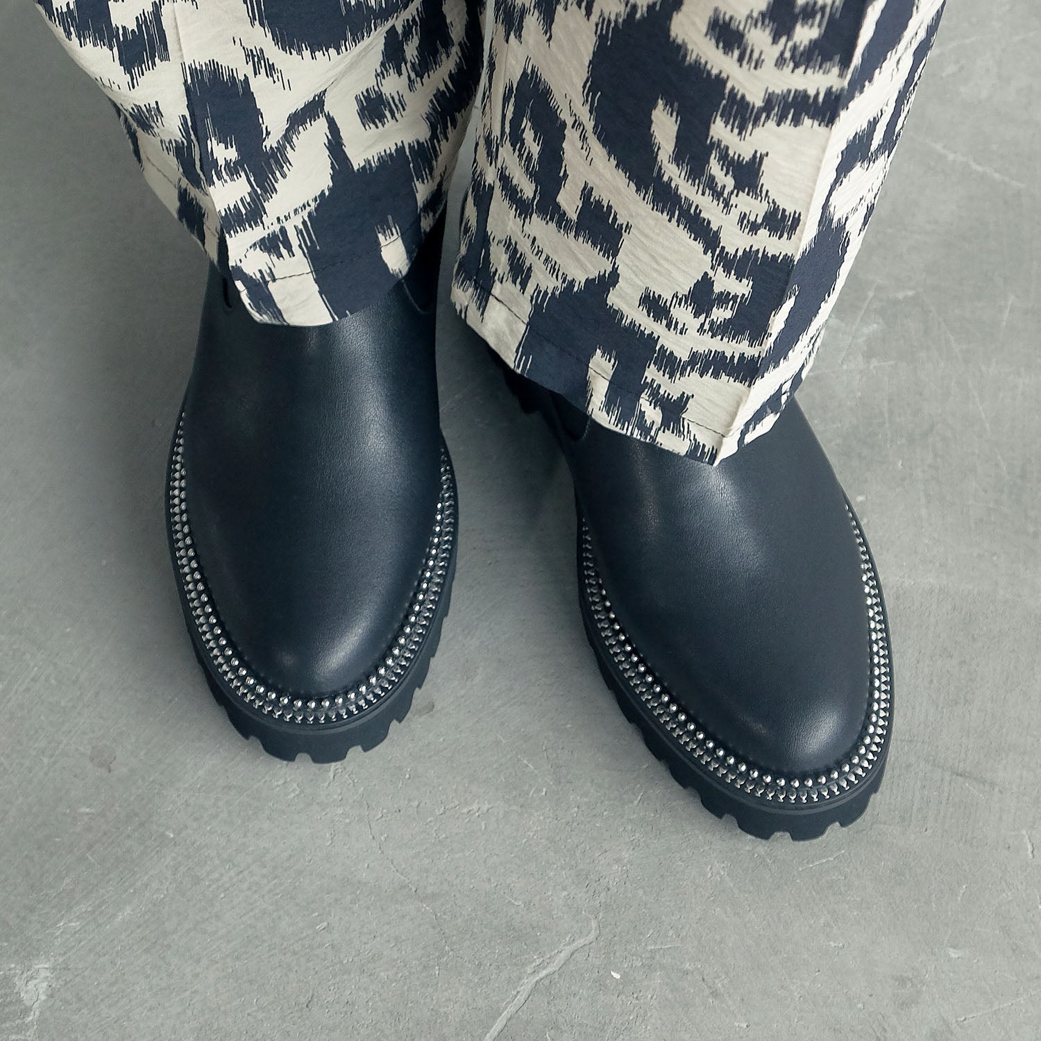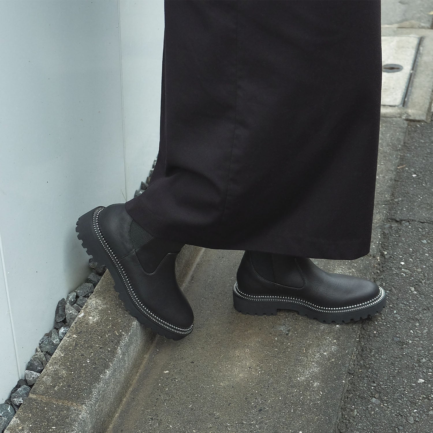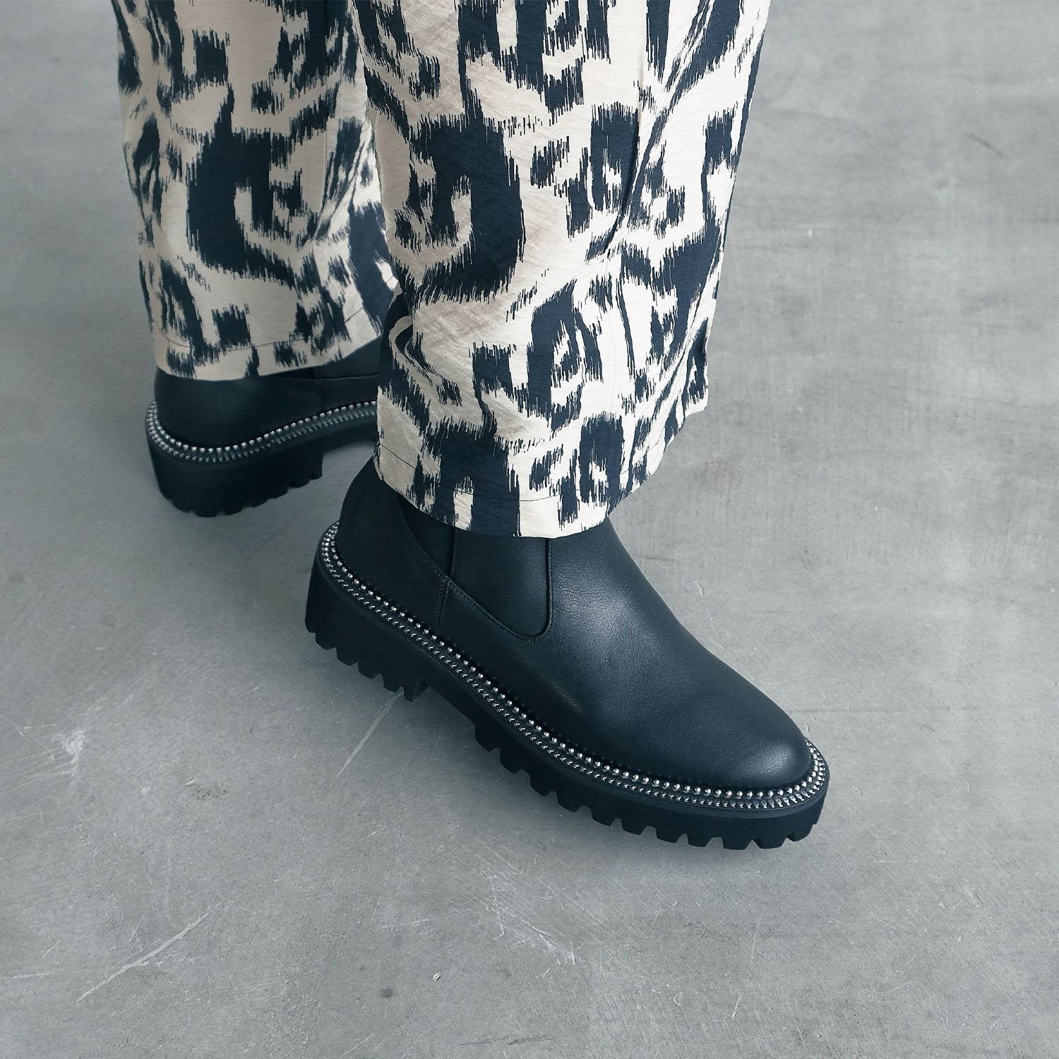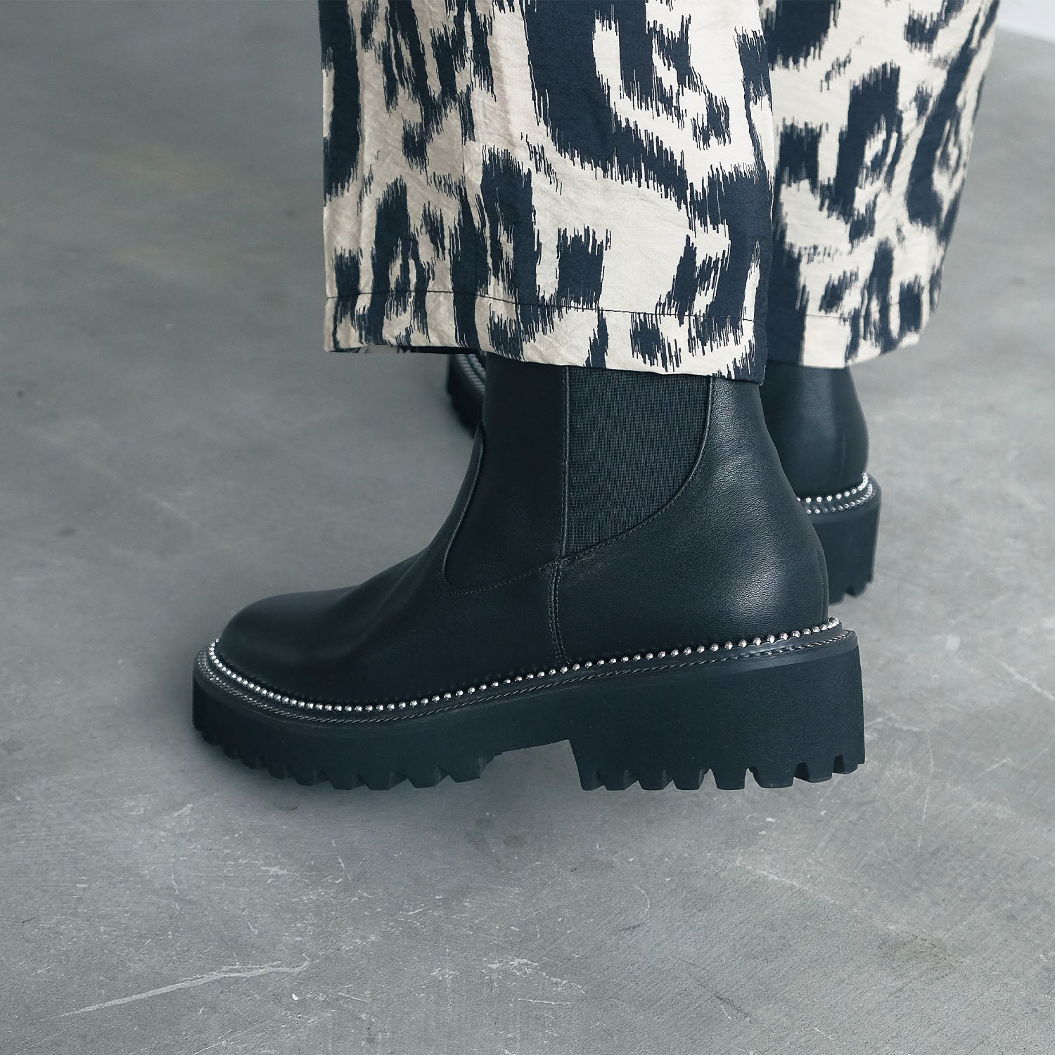 ソール周りのメタルスタッズが印象的なサイドゴアブーツ