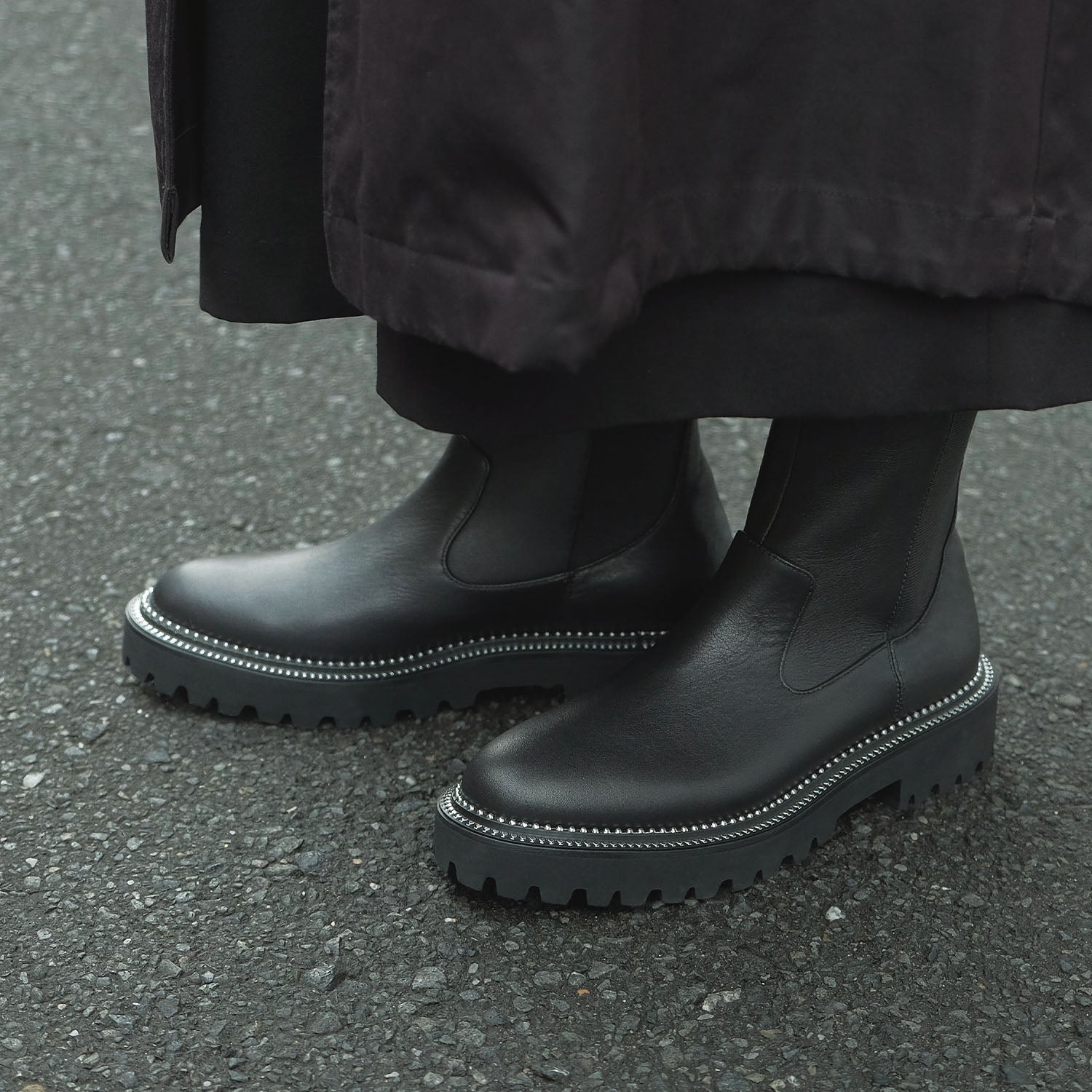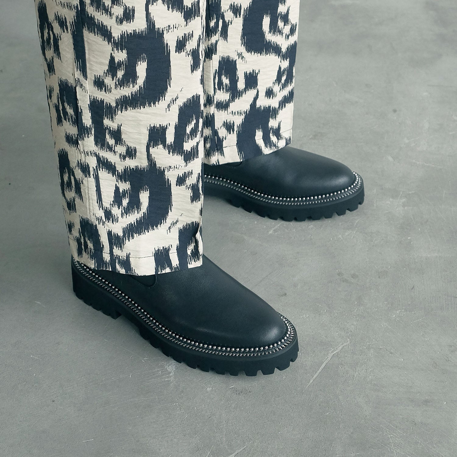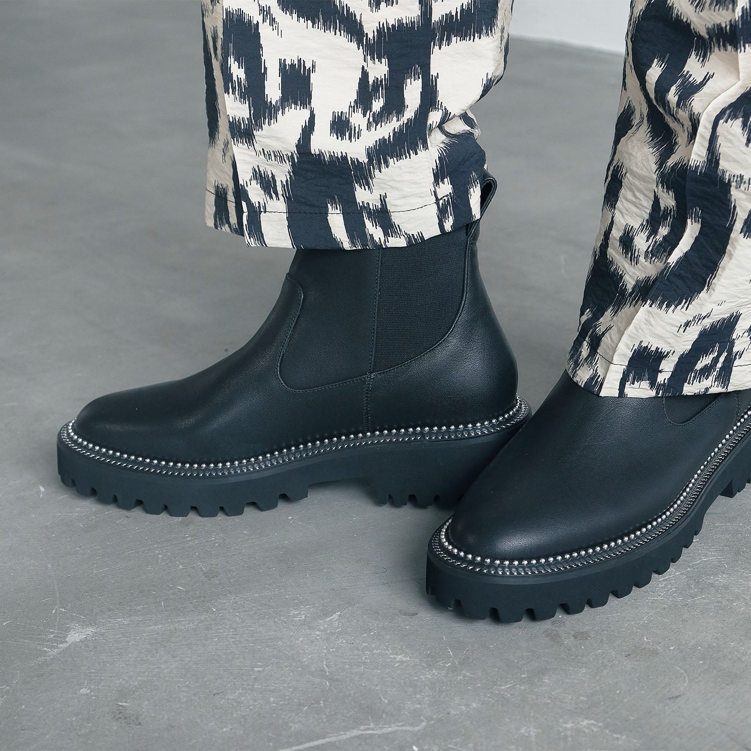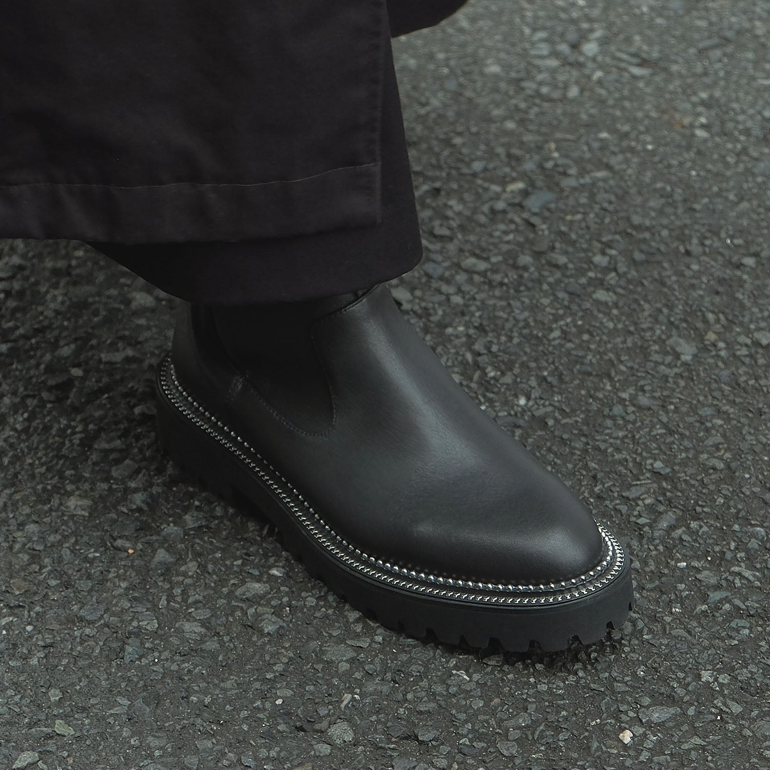ソール周りのメタルスタッズが印象的なサイドゴアブーツ