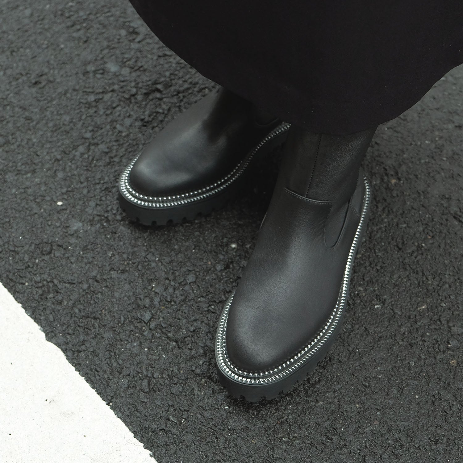 ・ベーシックなサイドゴアブーツはソール周りに派手さをプラスしアップデート