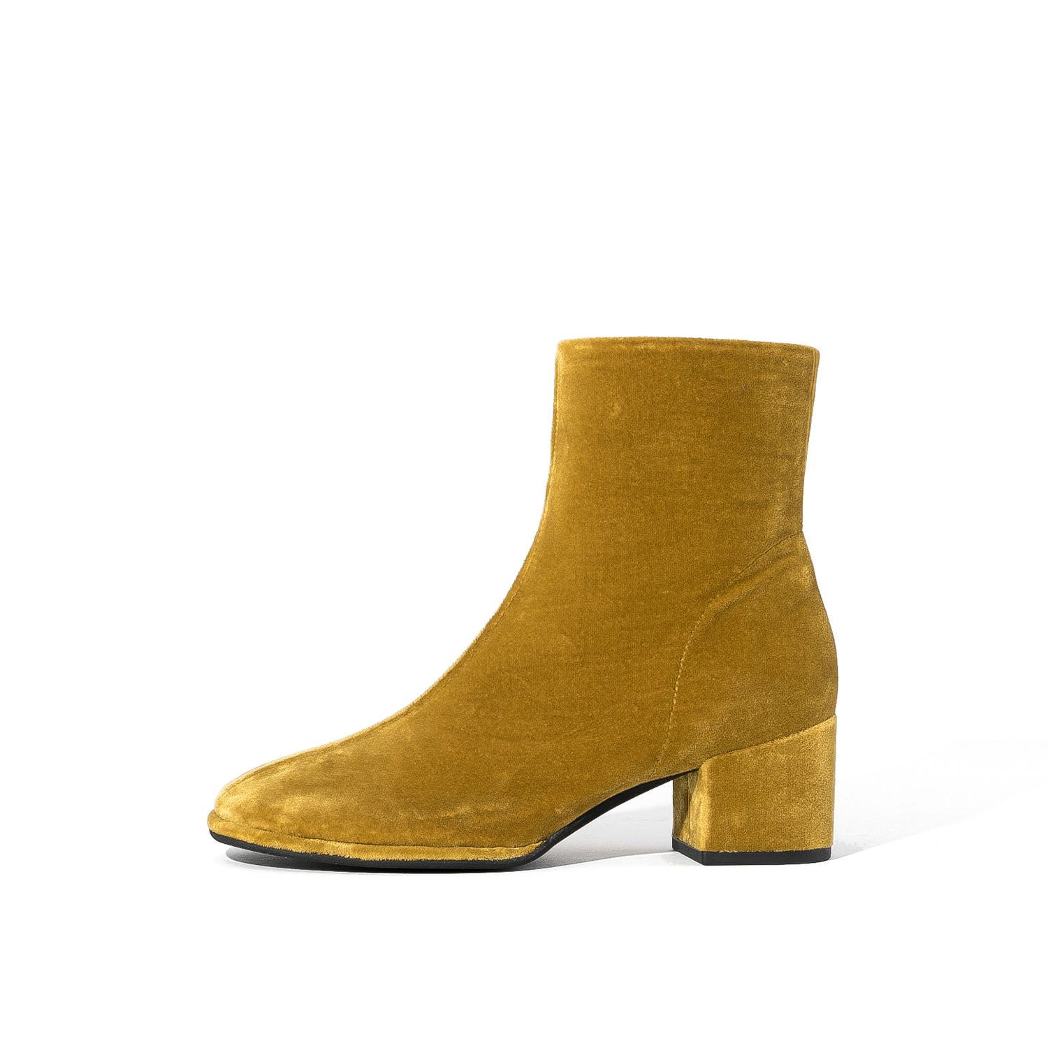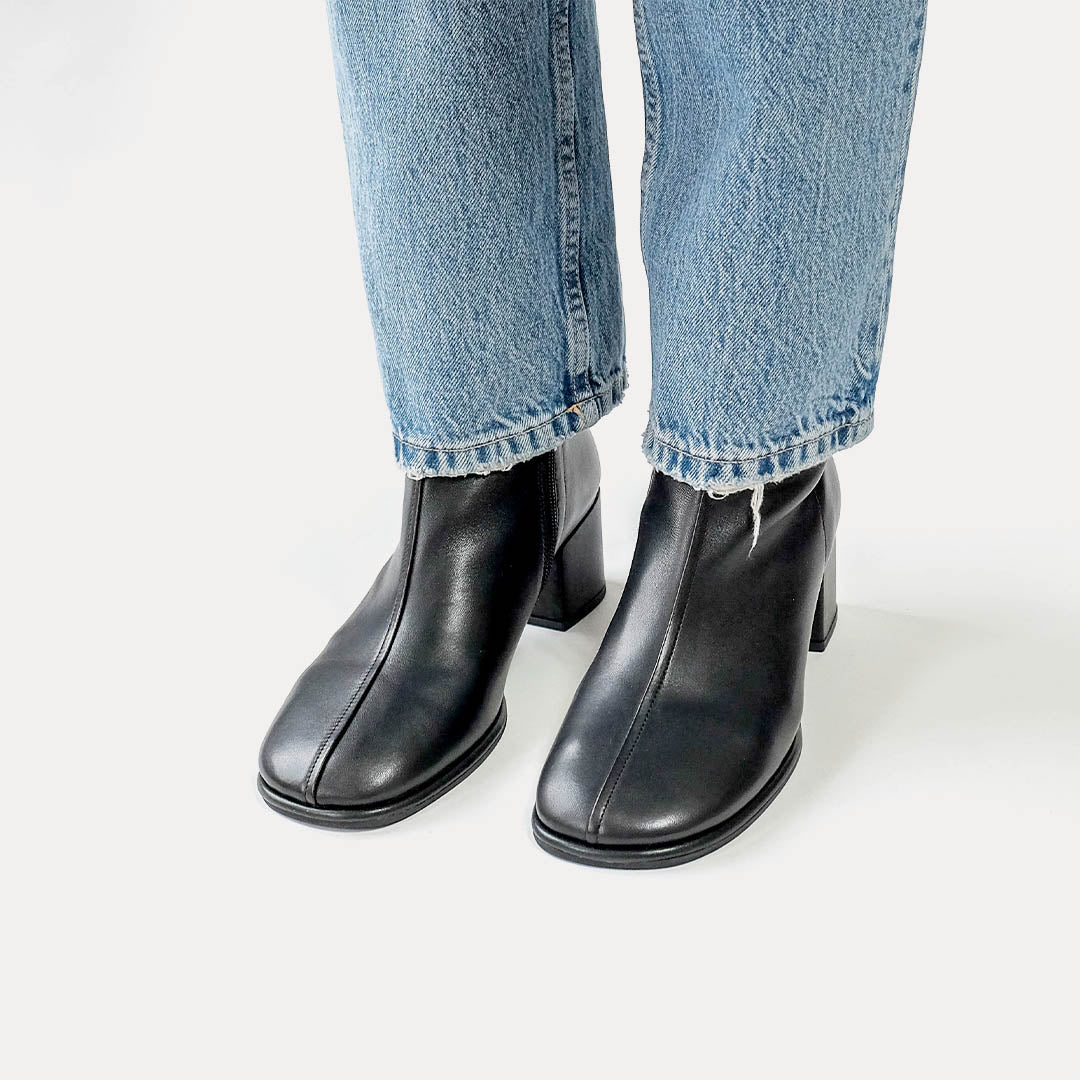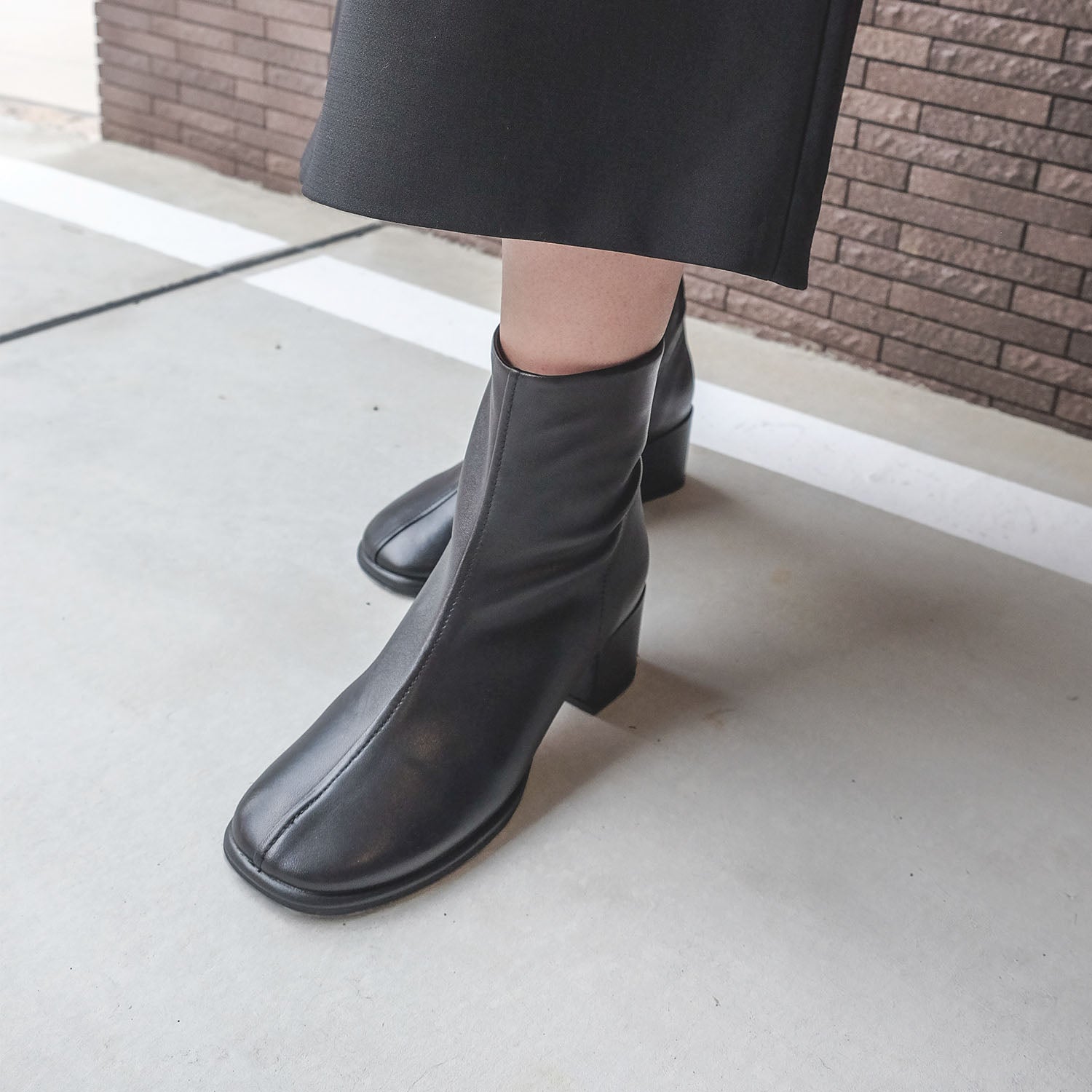 カラーと素材にこだわり、注目のラウンドトゥを採用したショートブーツ