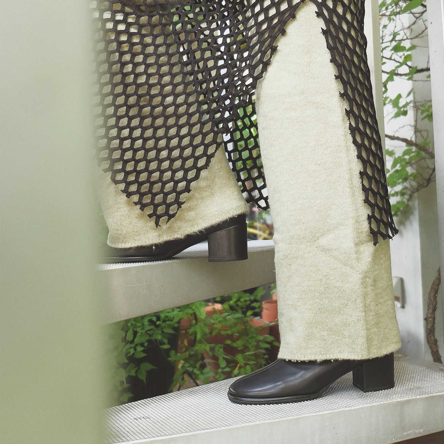 捨て寸もあり、足指には比較的ゆとりがあります。こちらのブーツは着用時のシルエットを綺麗に見せるため筒部分と甲は足にぴったりフィットするような仕様です。
