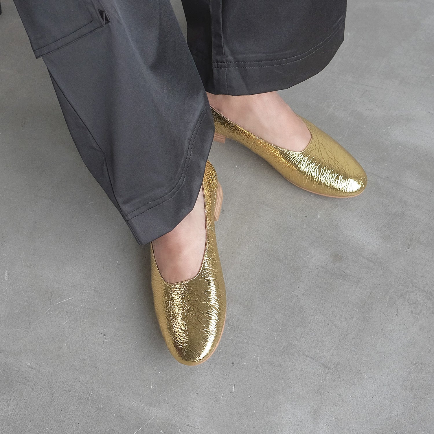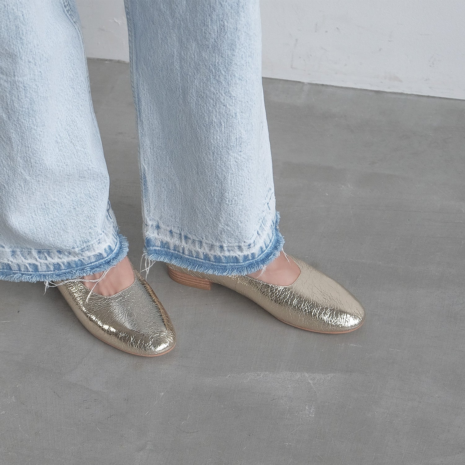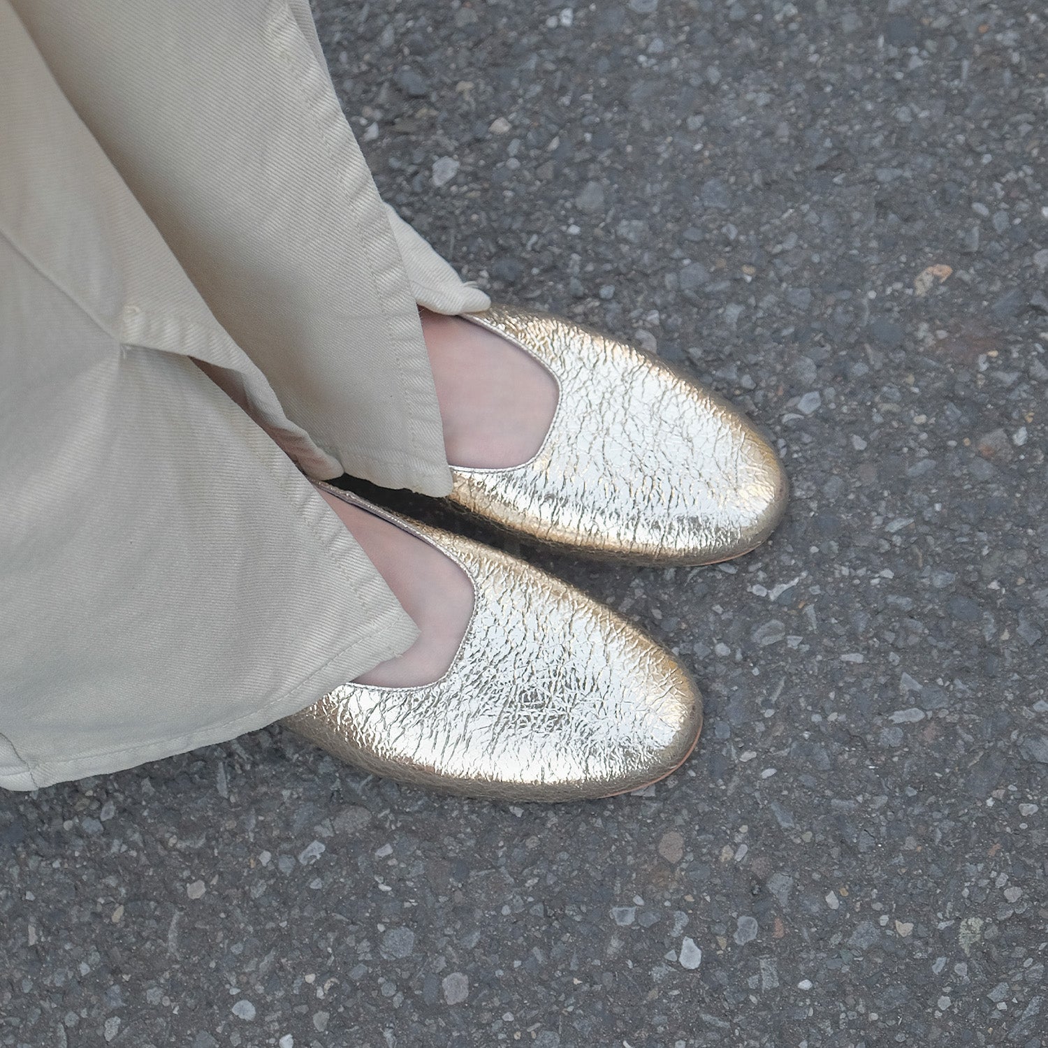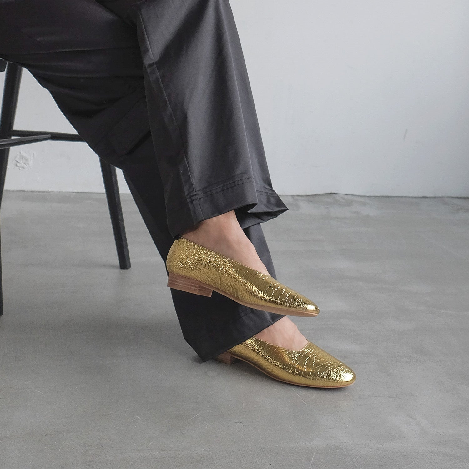 【H.V.F.N × Daniella & GEMMA】【レイン対応】メタリックラウンドトゥフラットシューズ_GE23161