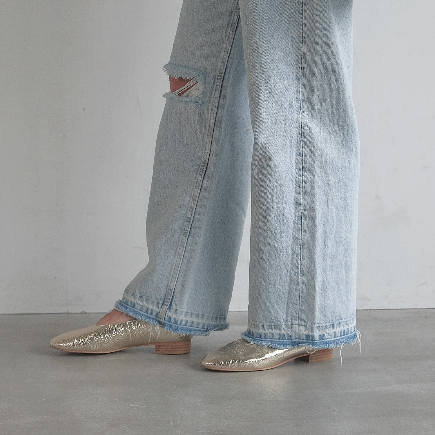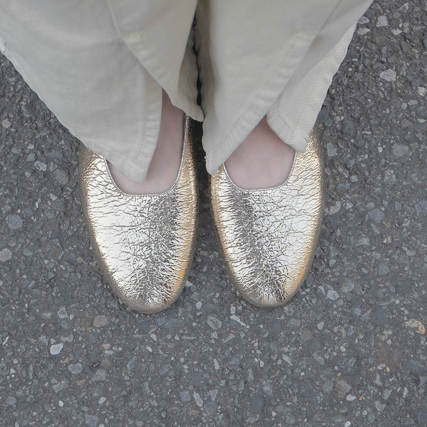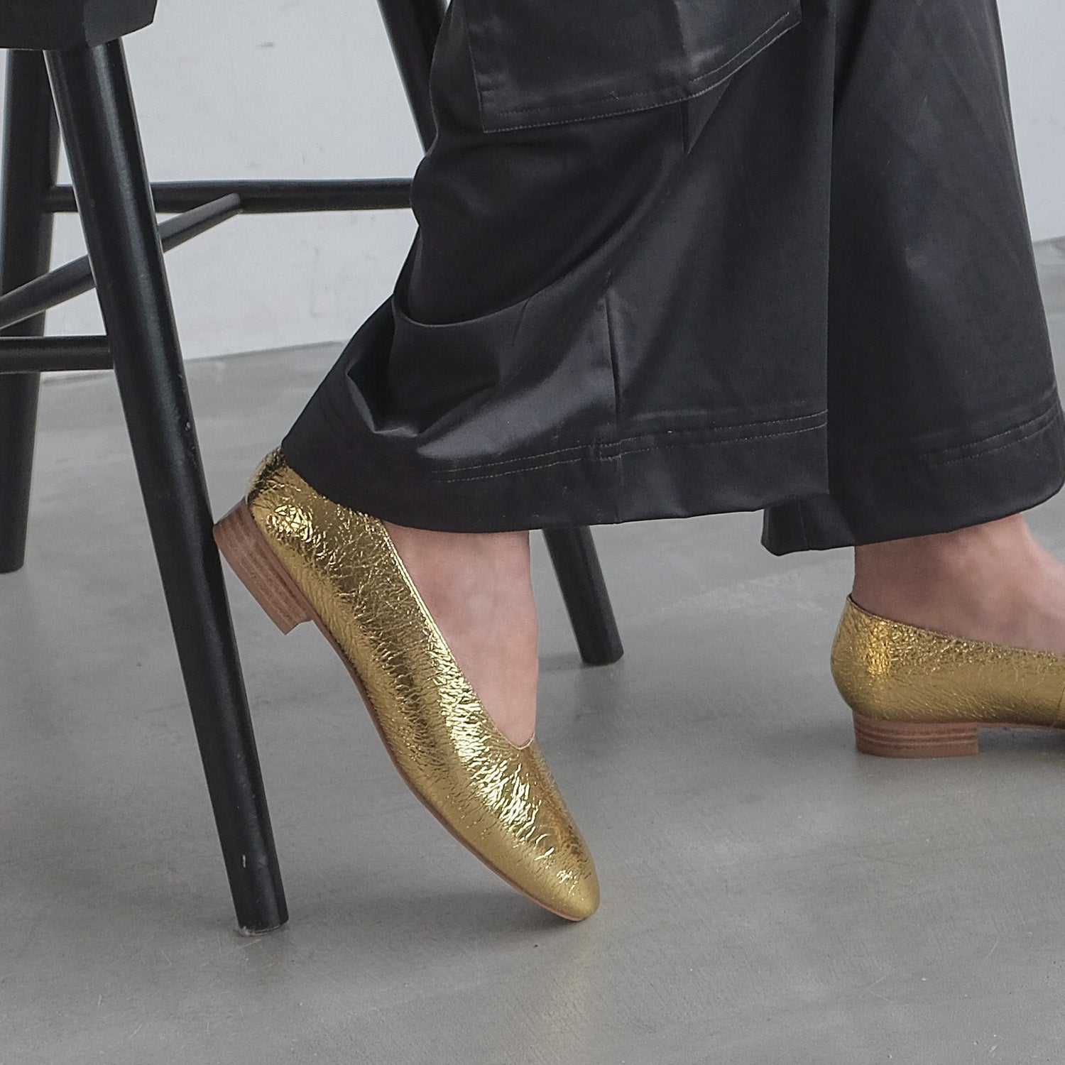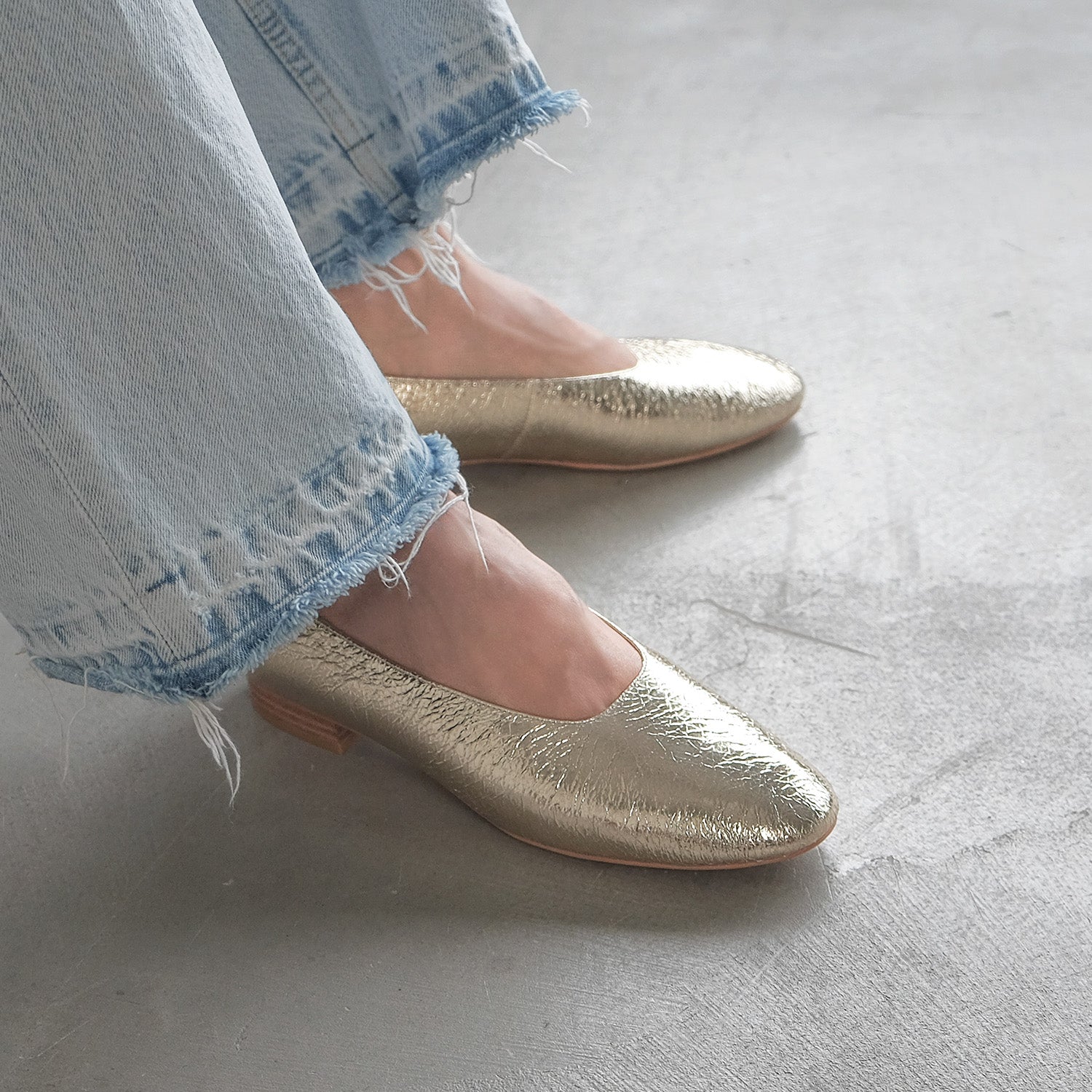 【H.V.F.N × Daniella & GEMMA】【レイン対応】メタリックラウンドトゥフラットシューズ_GE23161