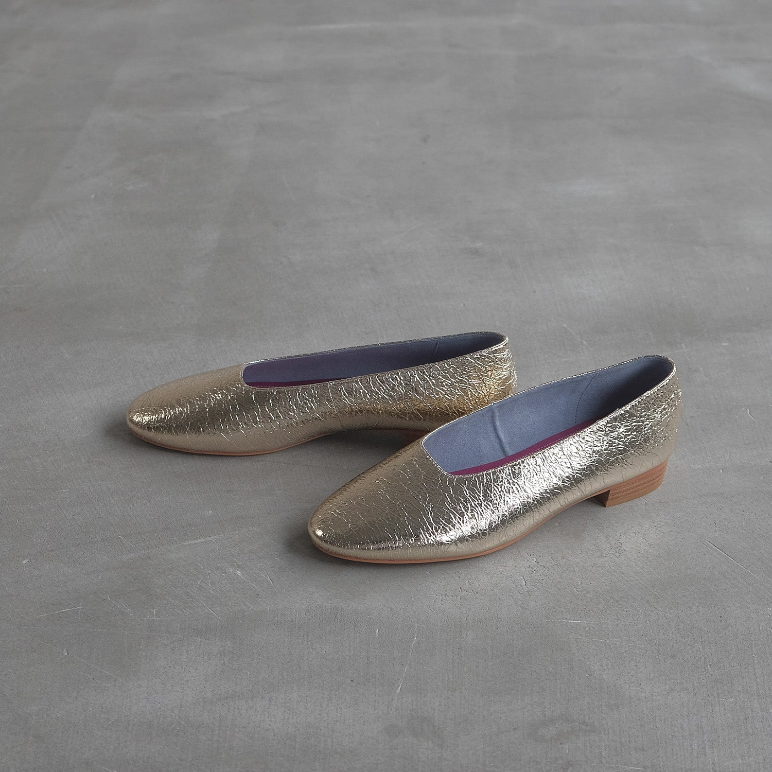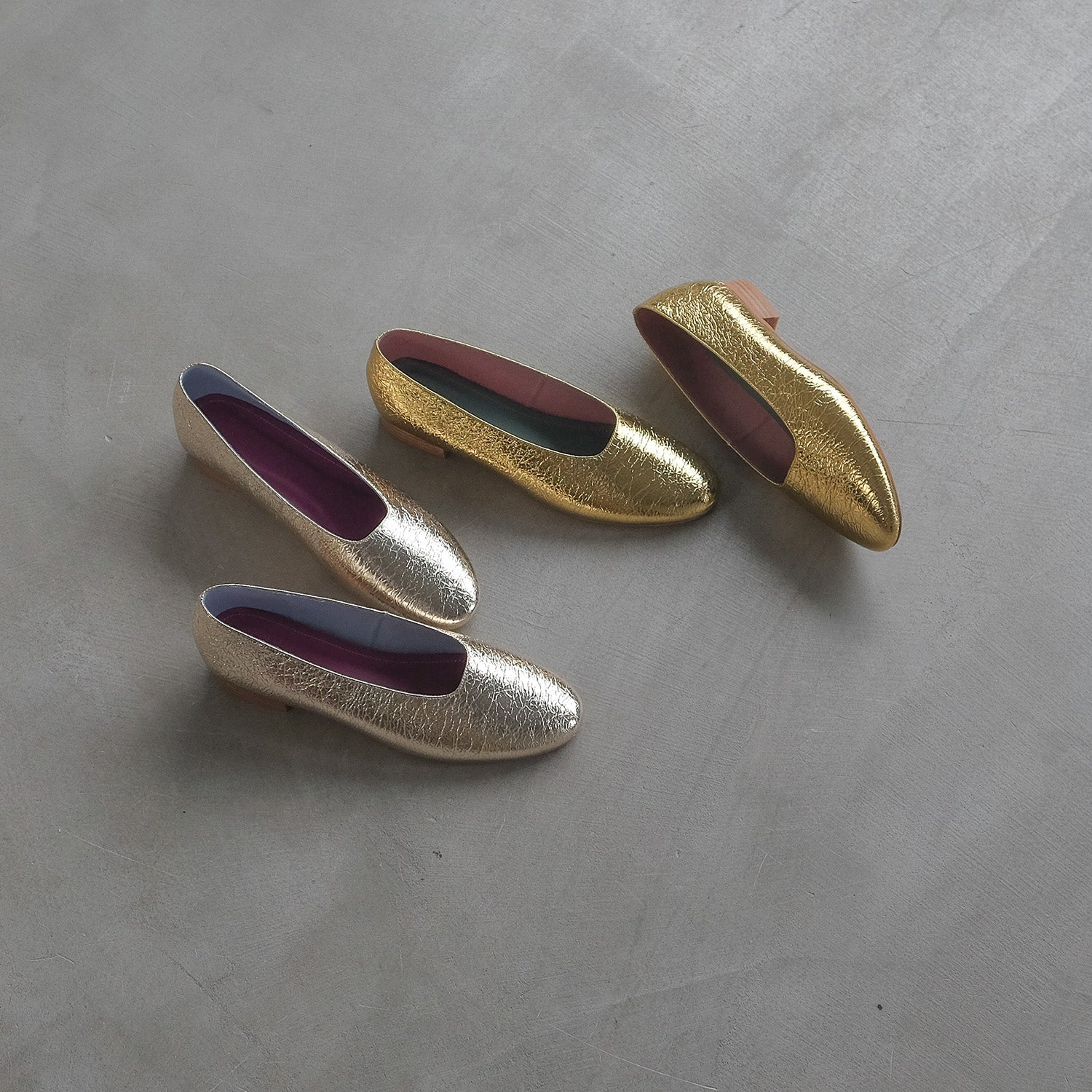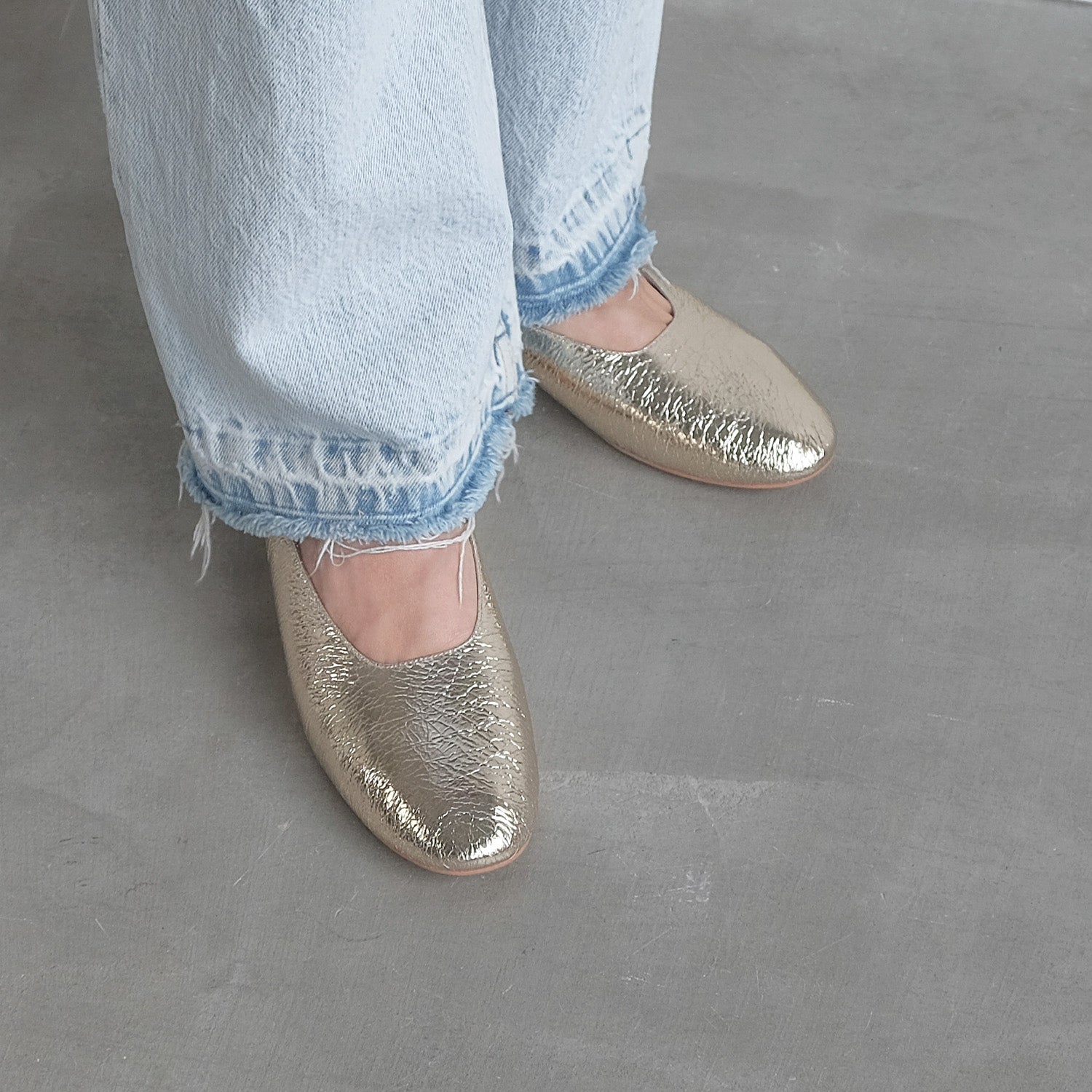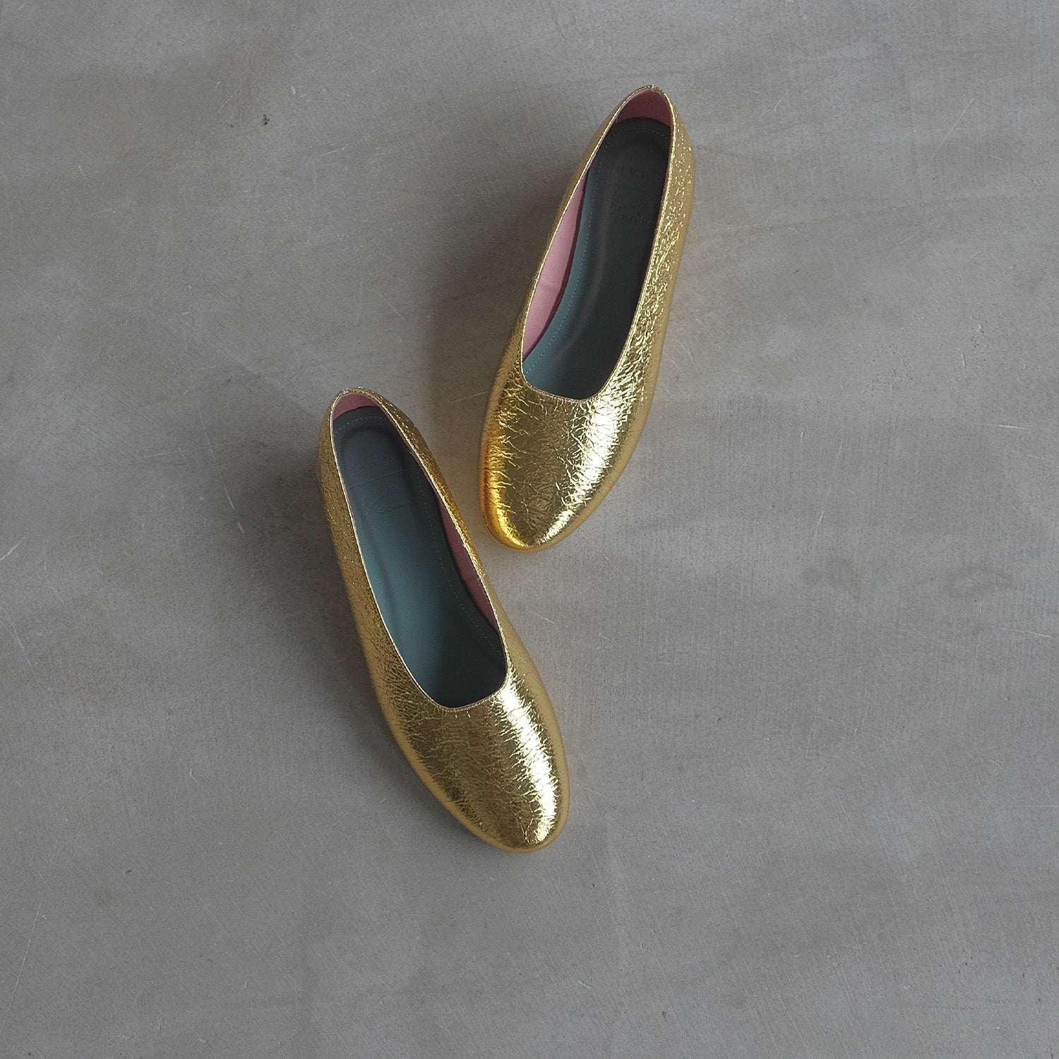 【H.V.F.N × Daniella & GEMMA】【レイン対応】メタリックラウンドトゥフラットシューズ_GE23161