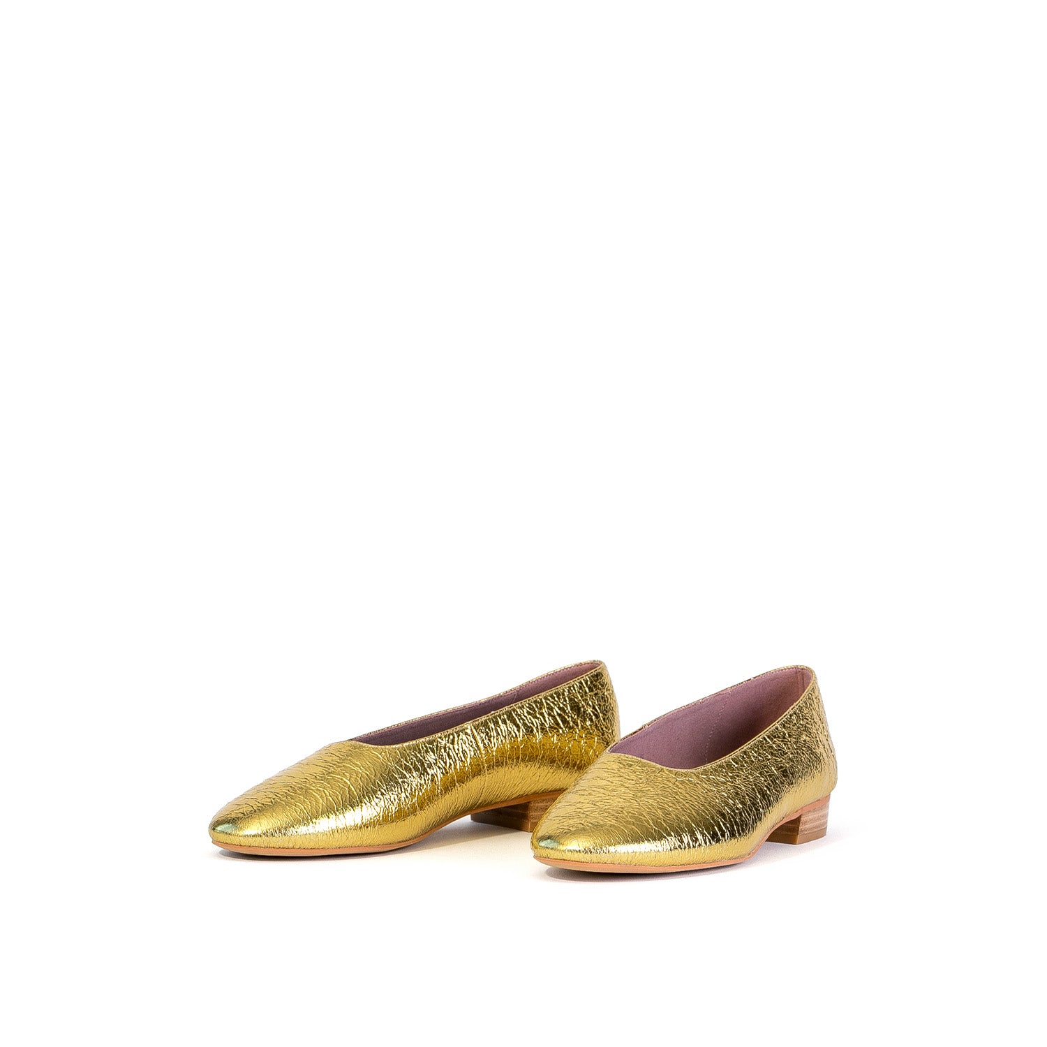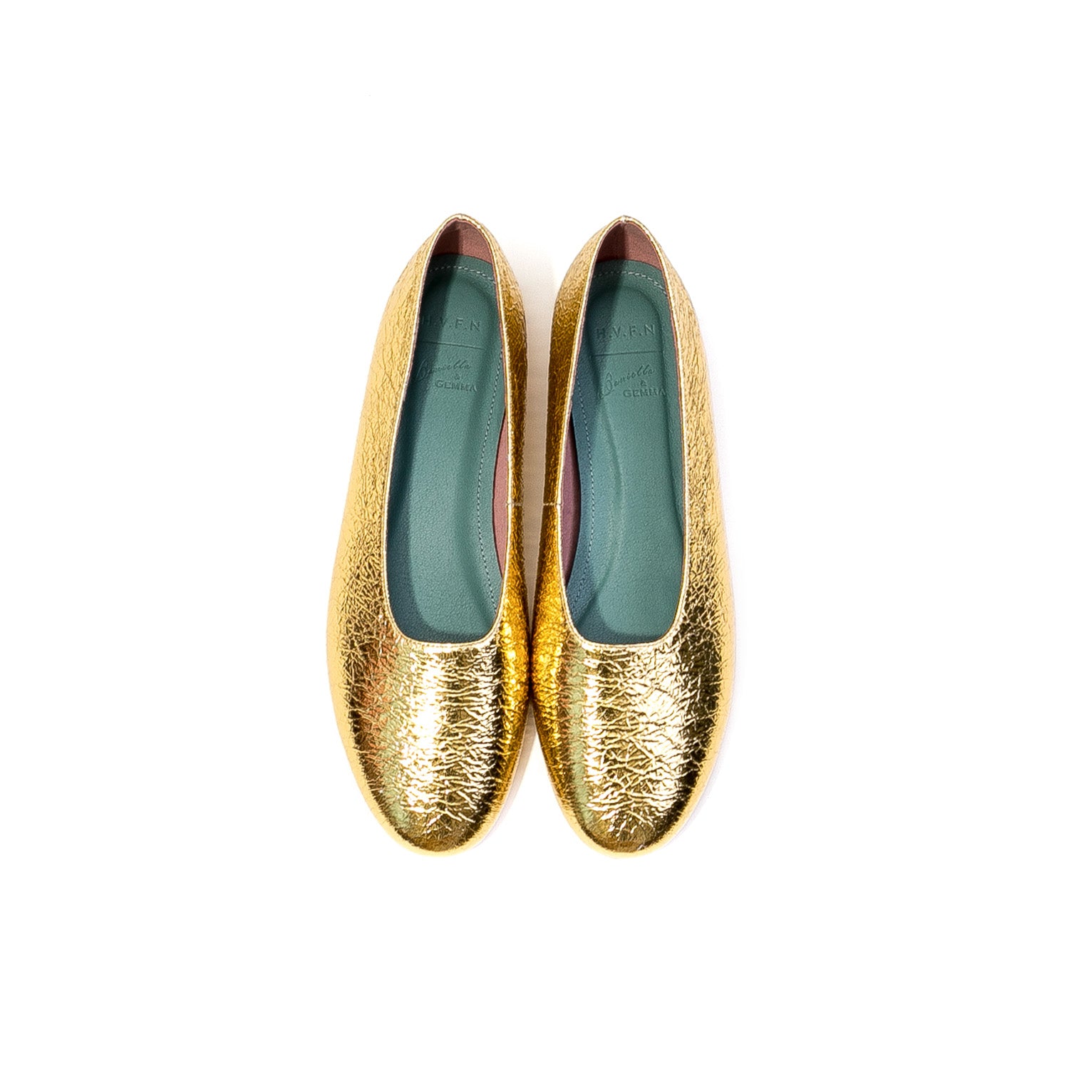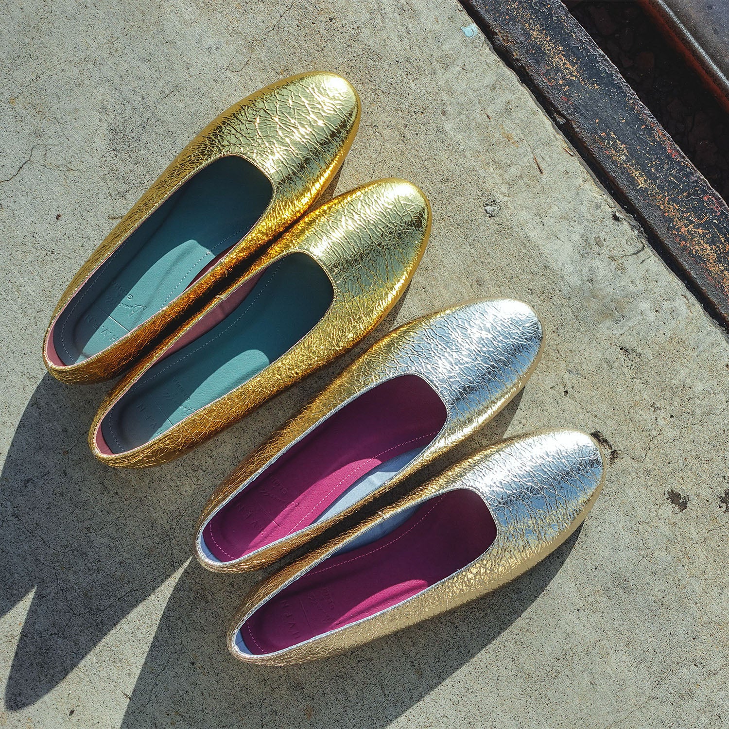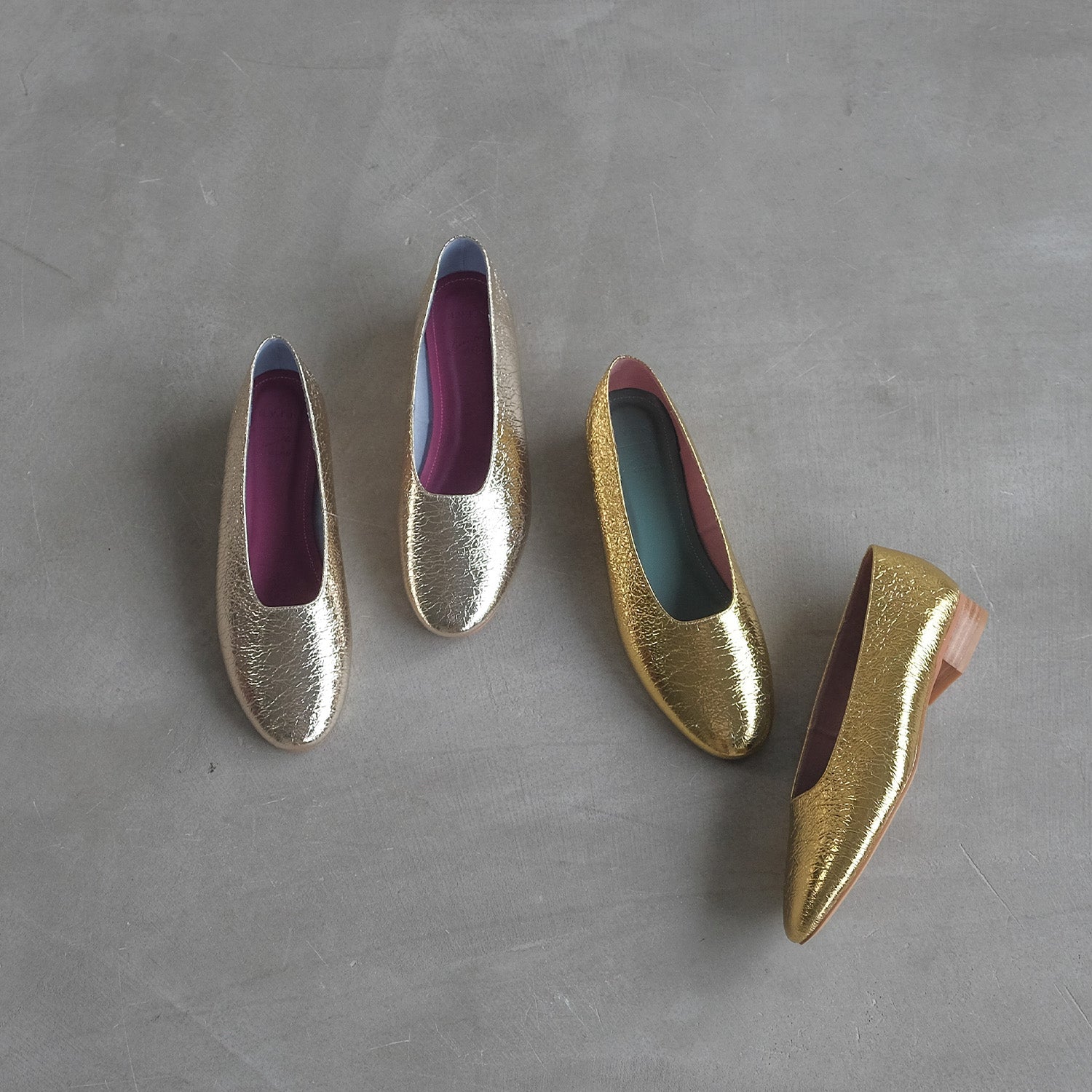 【H.V.F.N × Daniella & GEMMA】【レイン対応】メタリックラウンドトゥフラットシューズ_GE23161