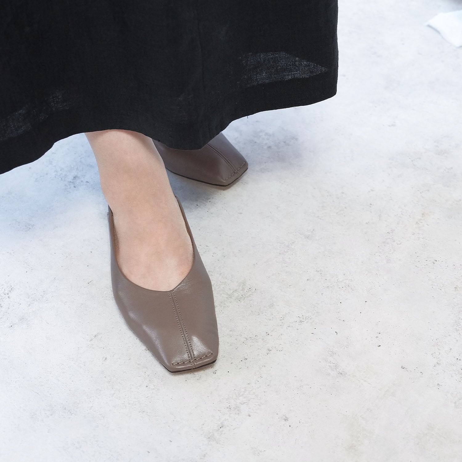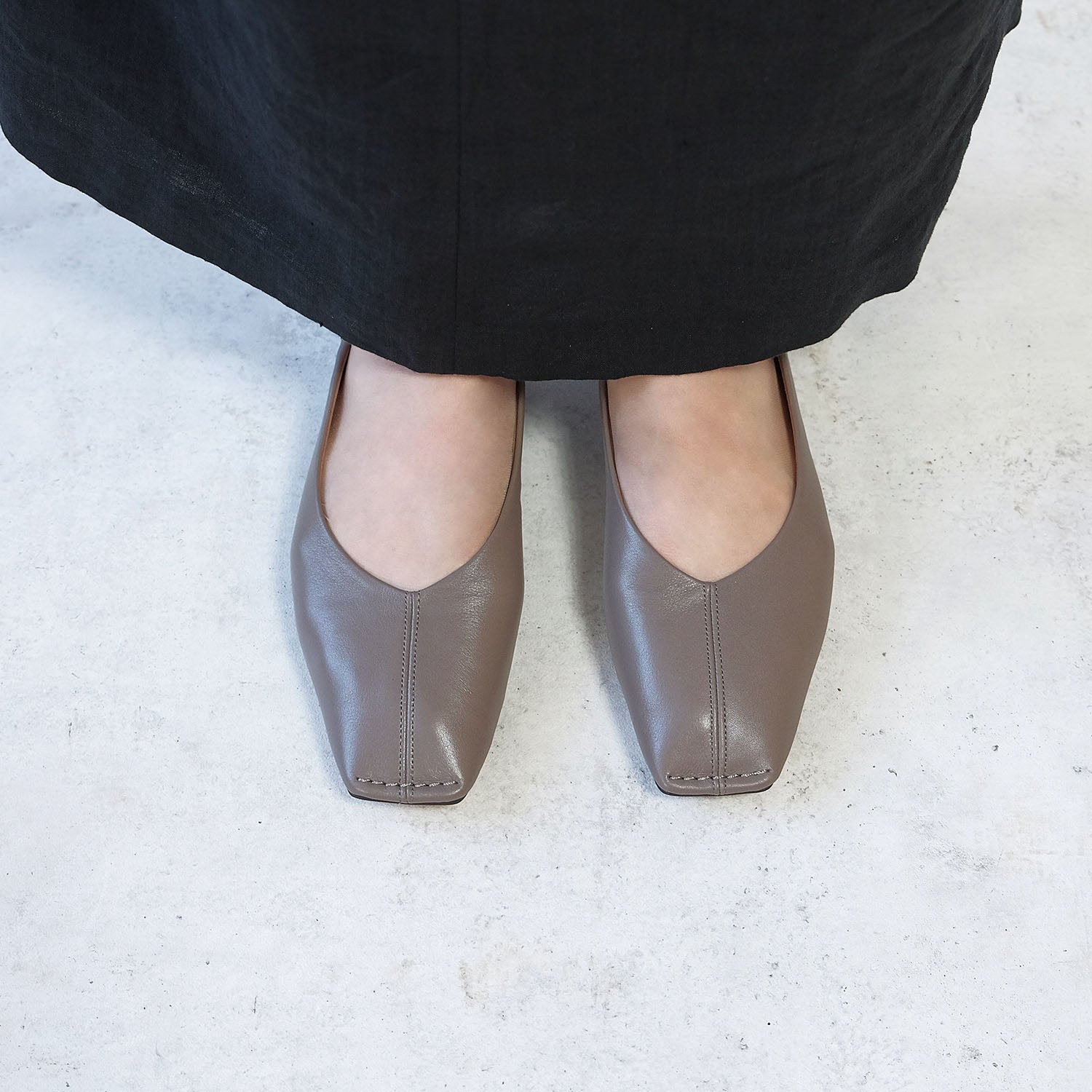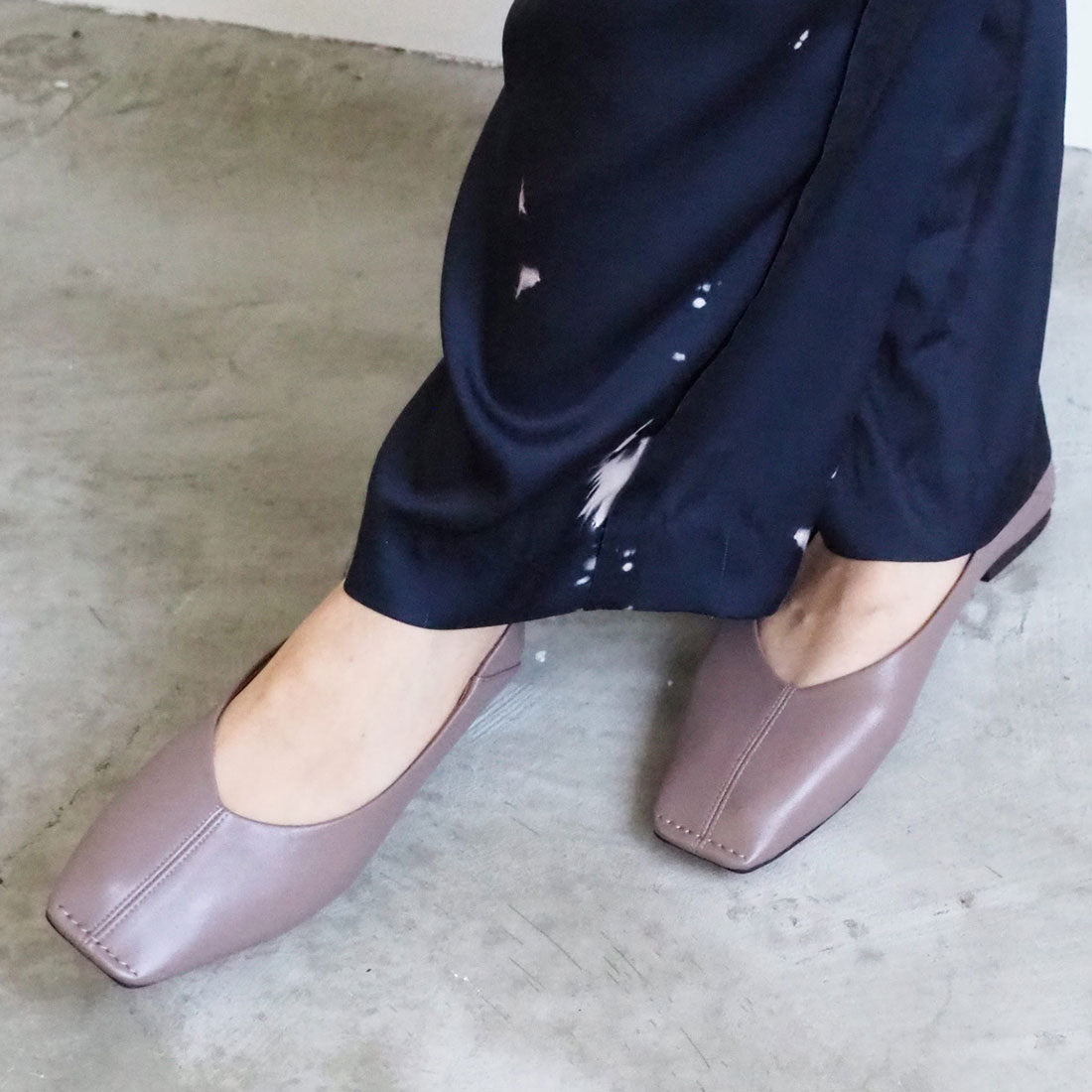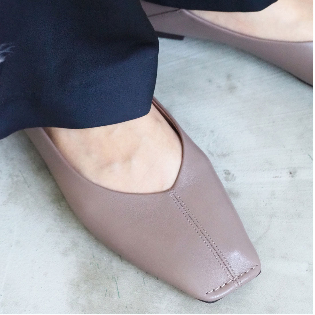 ・女性らしいシルエットながら、甘すぎないスクエアトゥが大人好みの仕上がりに
