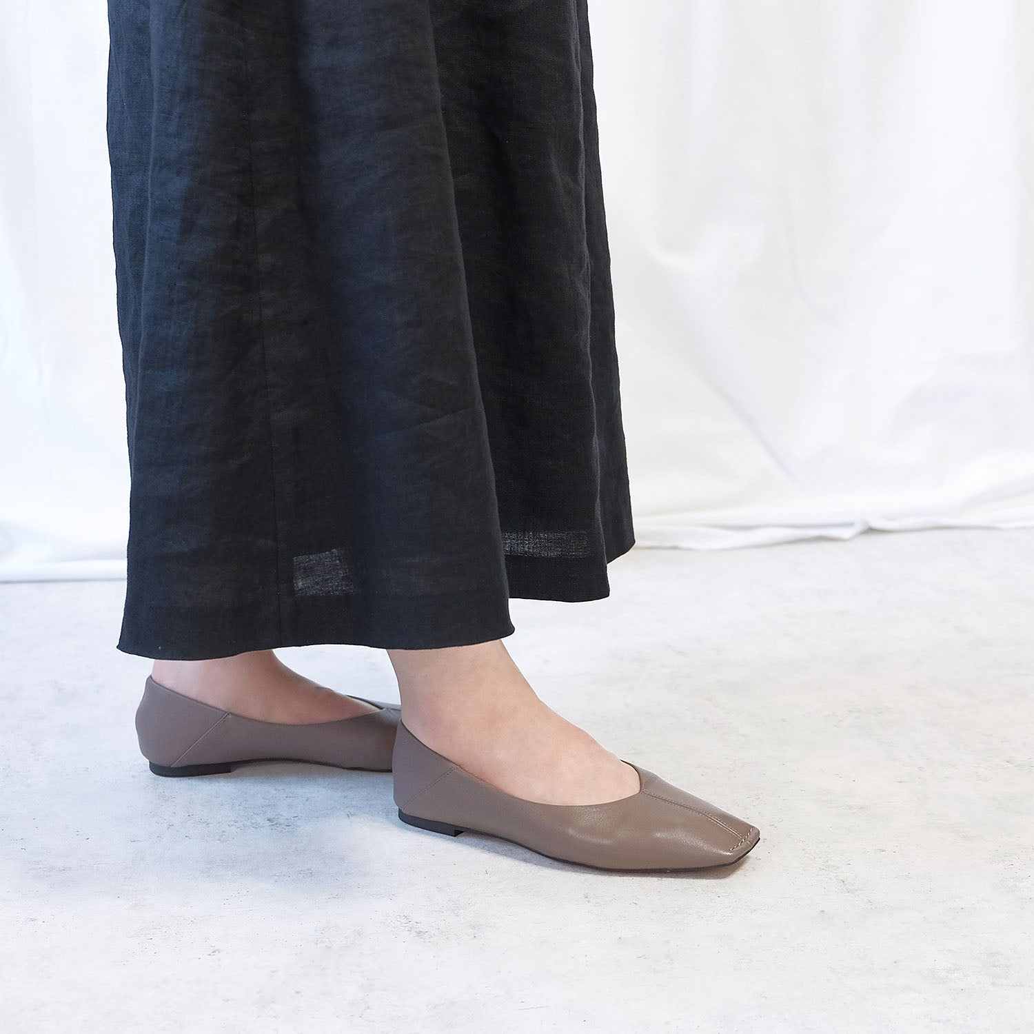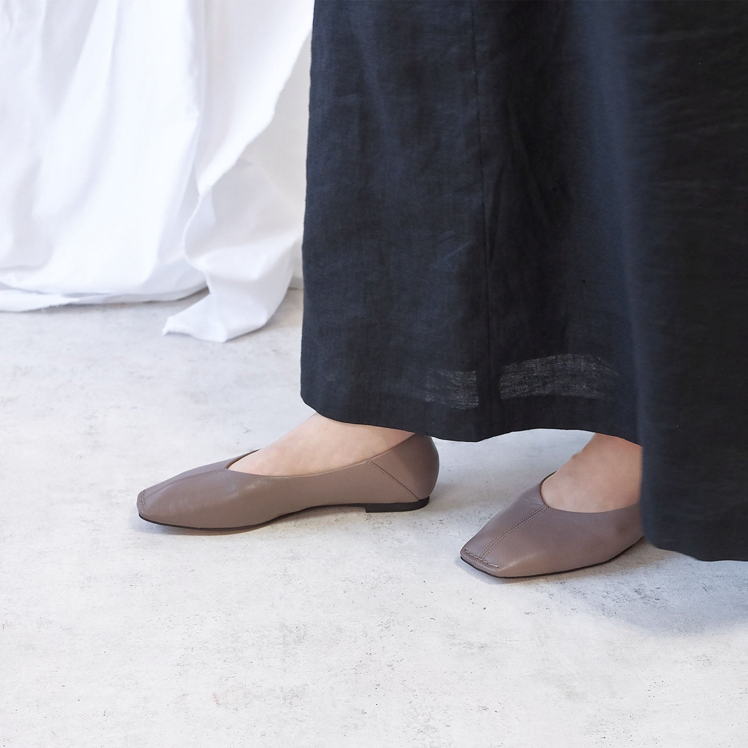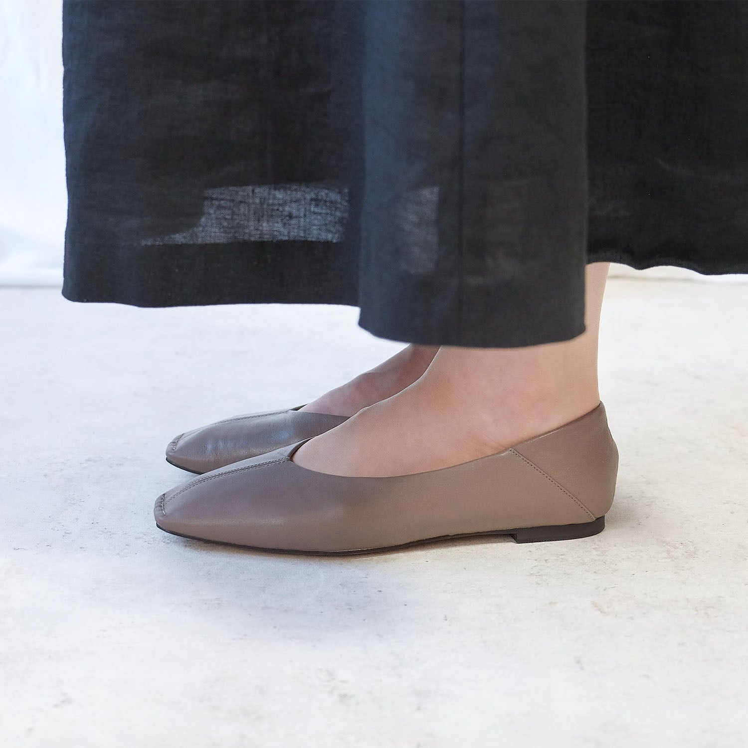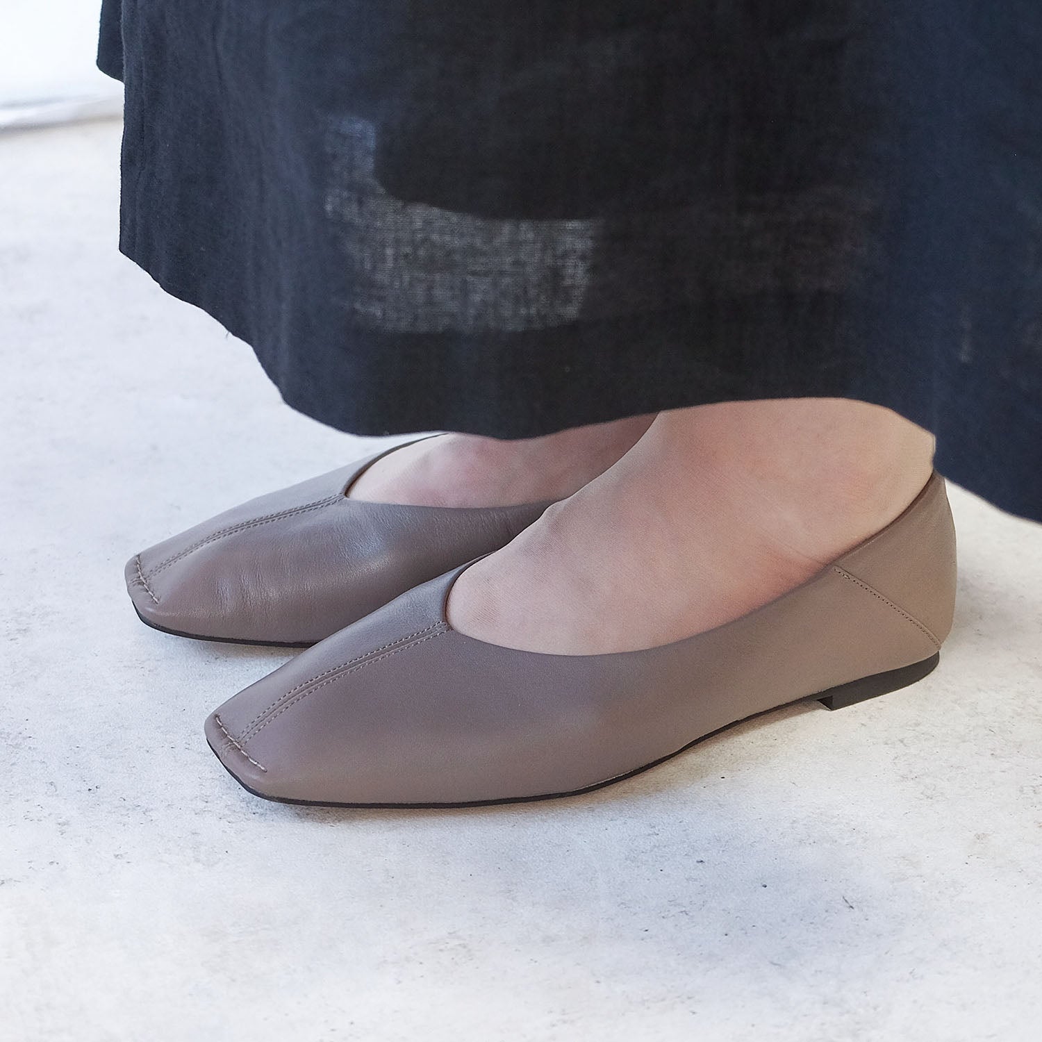 ・女性らしいシルエットながら、甘すぎないスクエアトゥが大人好みの仕上がりに