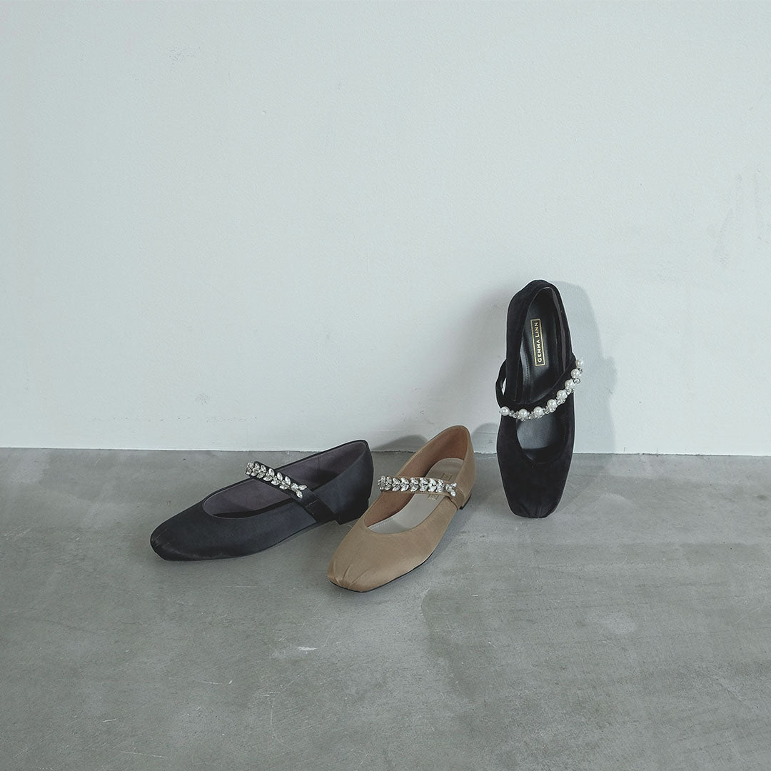 【Akiko Kizu × Daniella & GEMMA】ビジューストラップバレエシューズ_GE23188