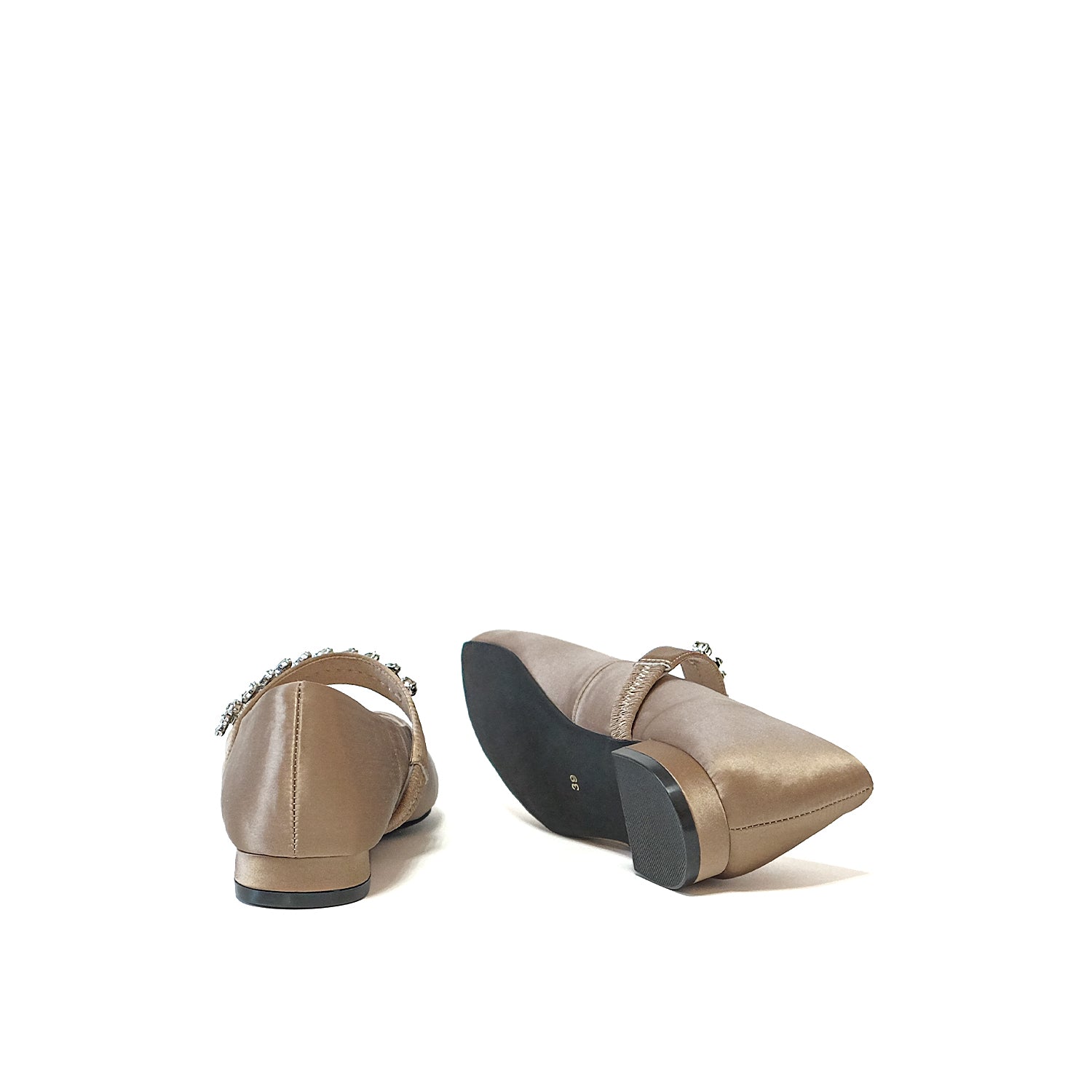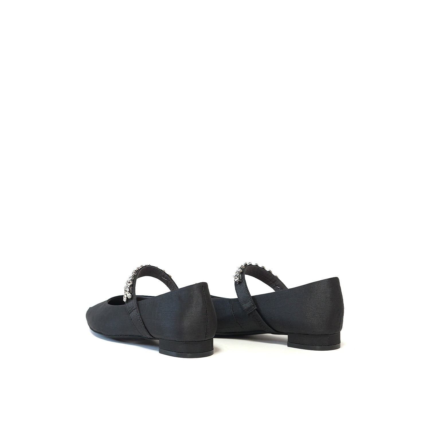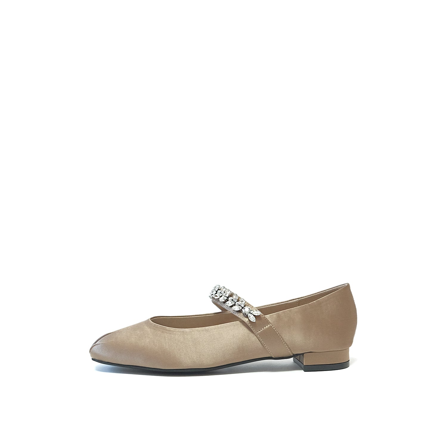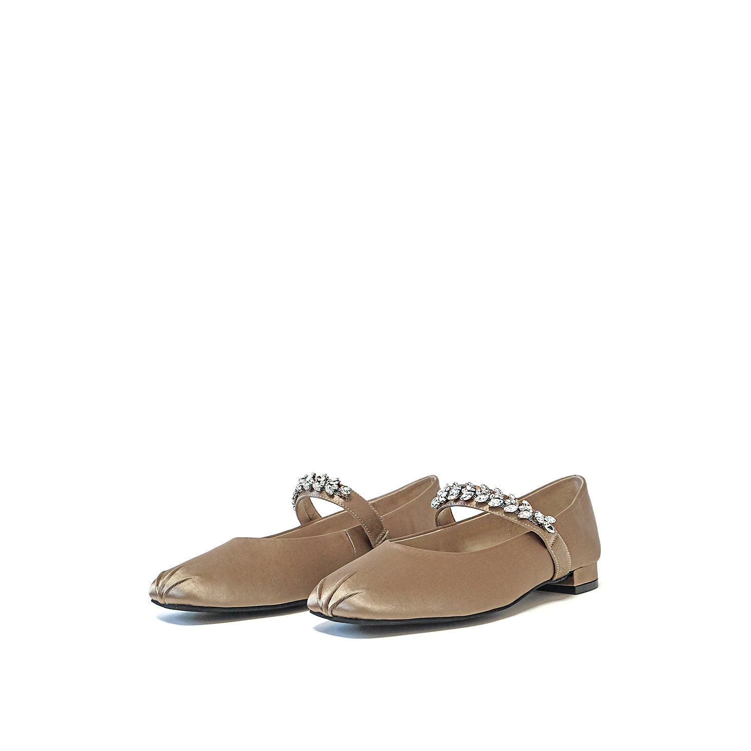 ・サテン素材にビジューの組み合わせのバレエシューズ