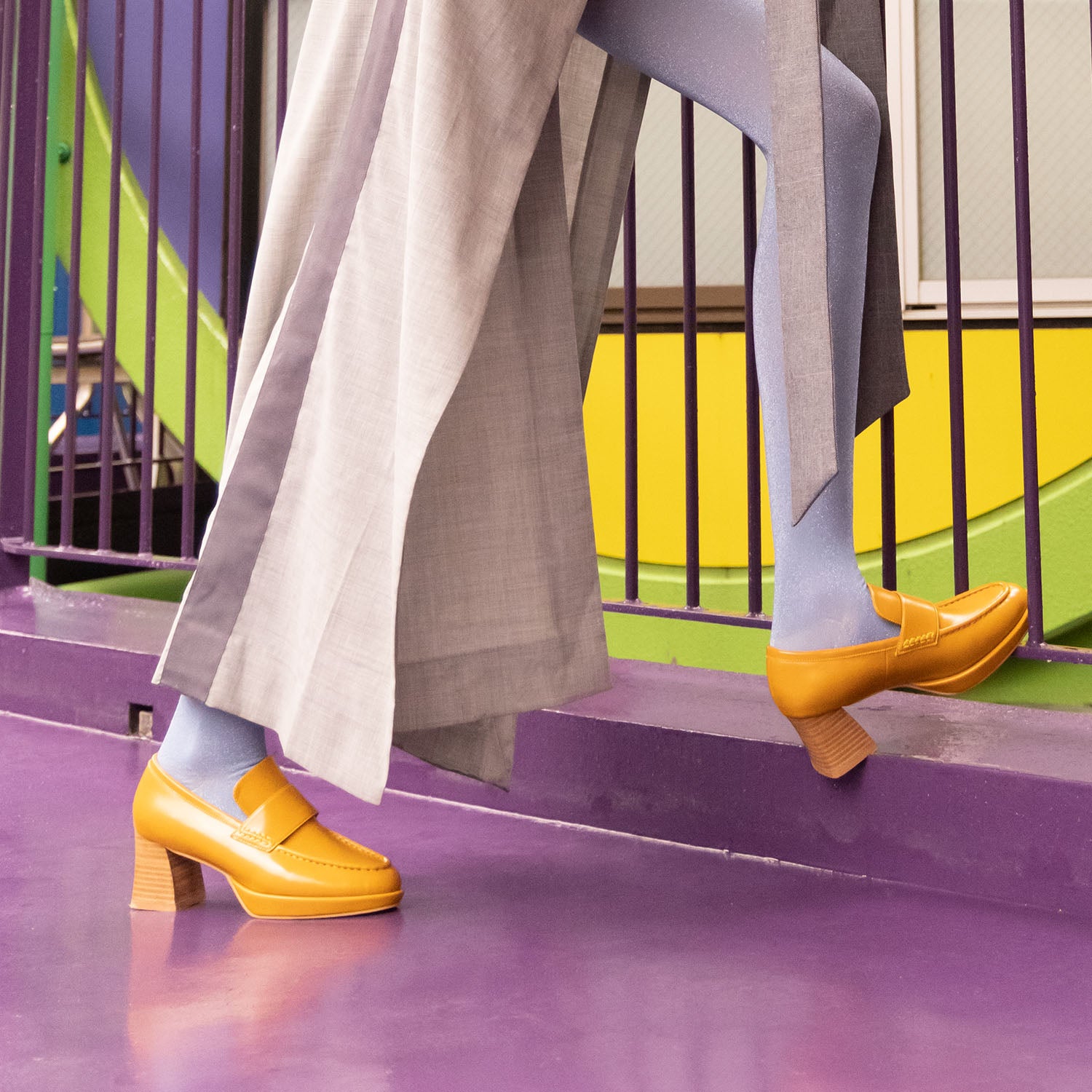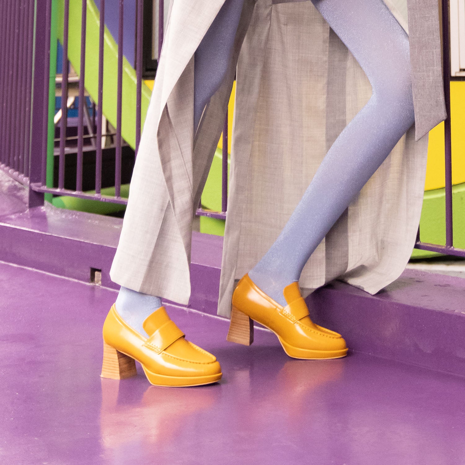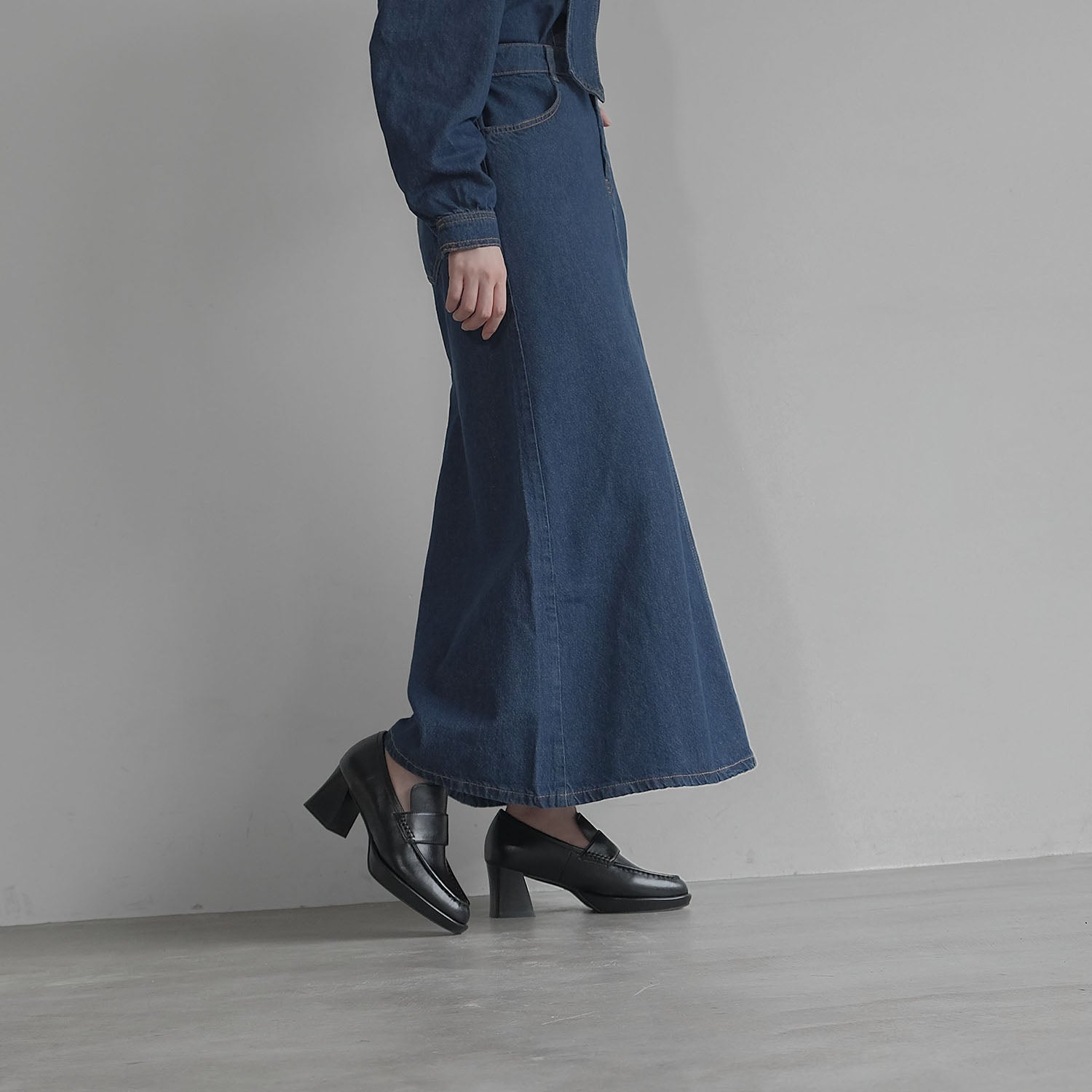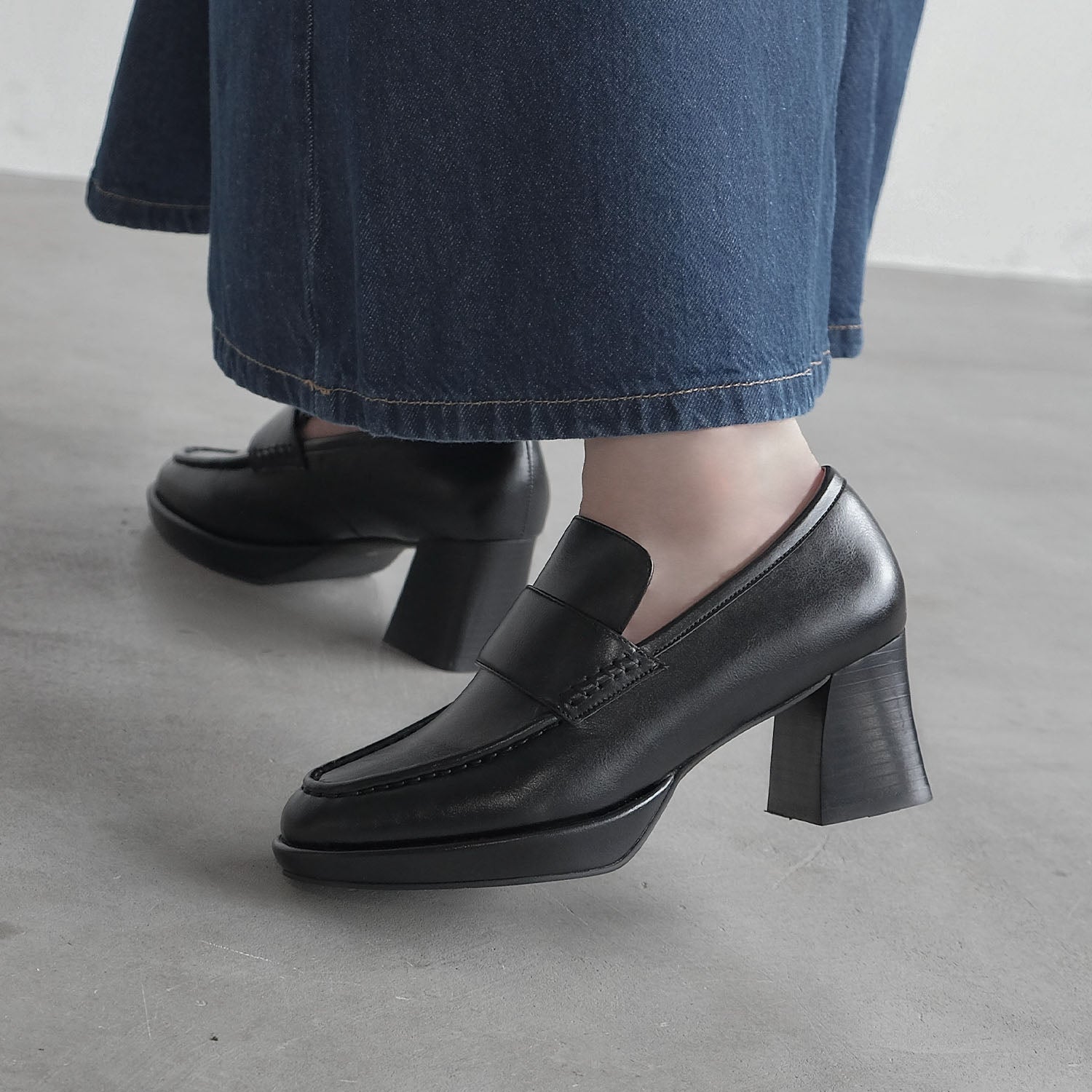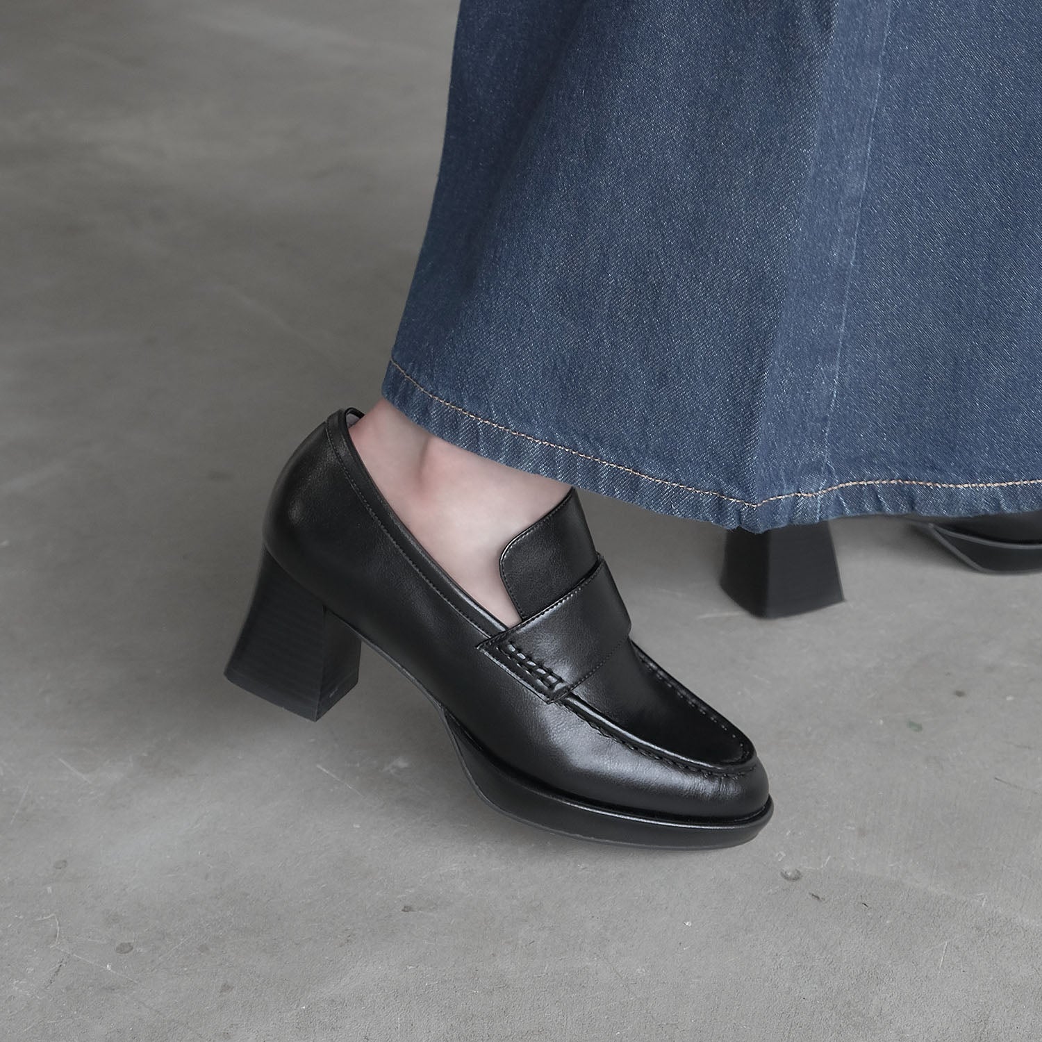 ・スタックヒールはフレアのシルエットでスタイリッシュ魅せます