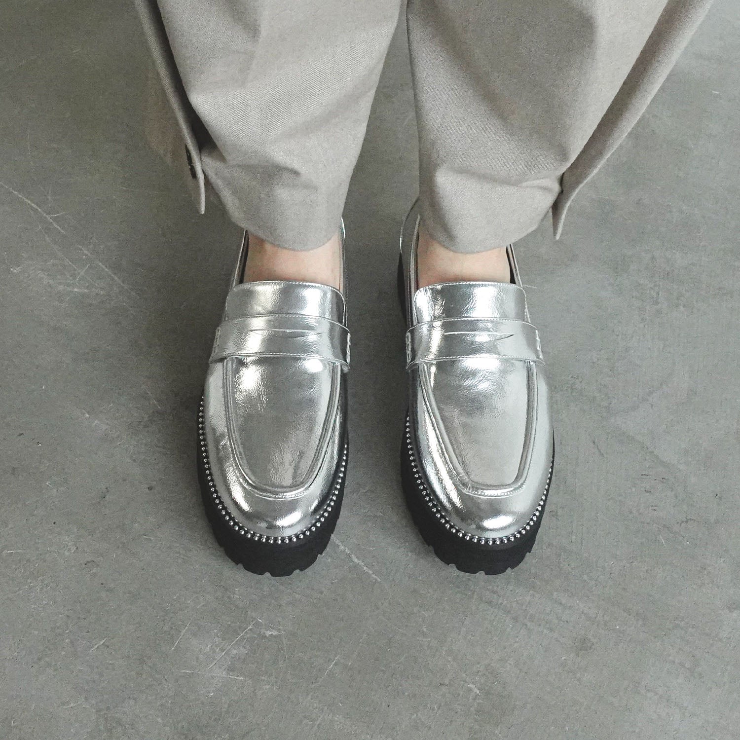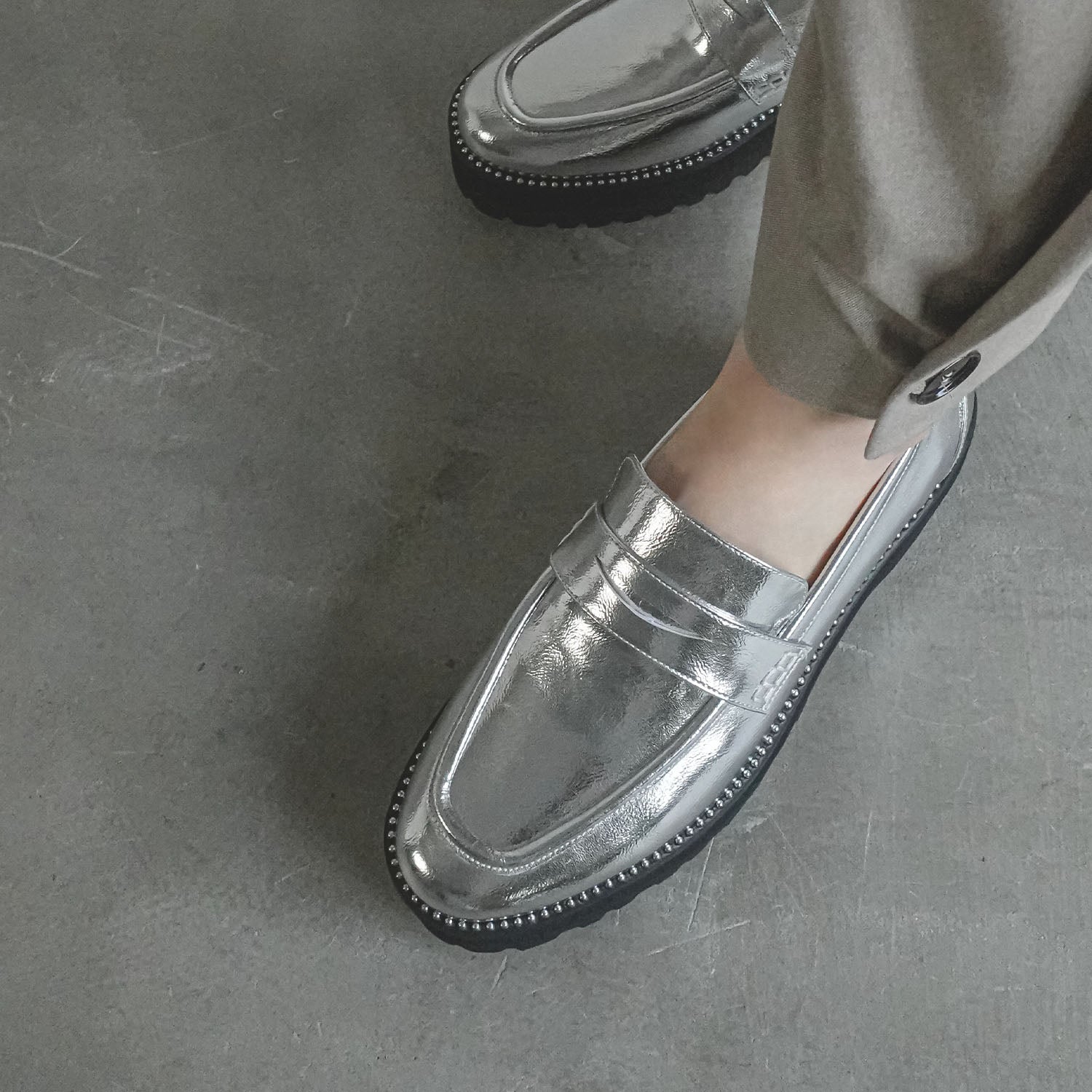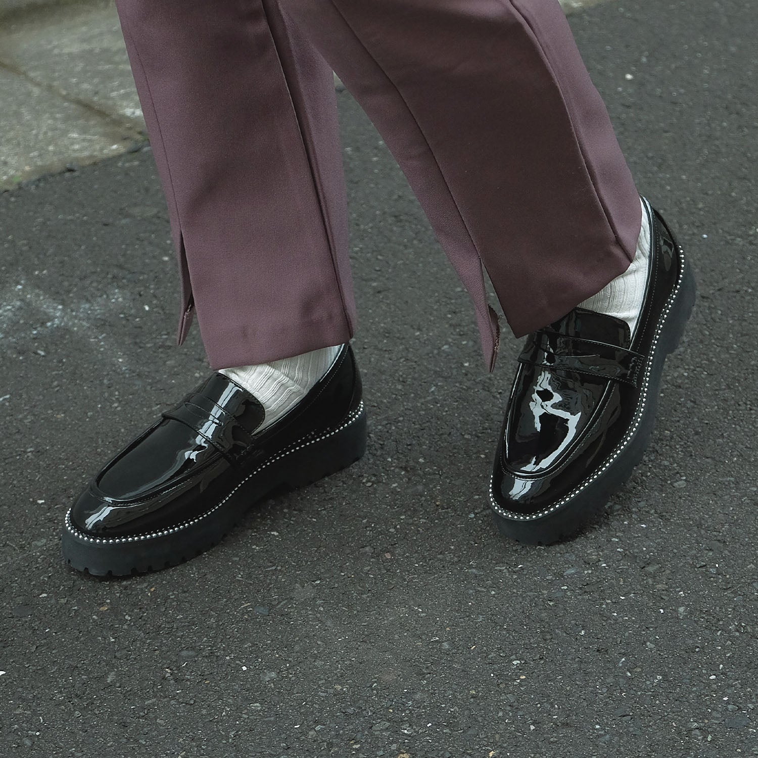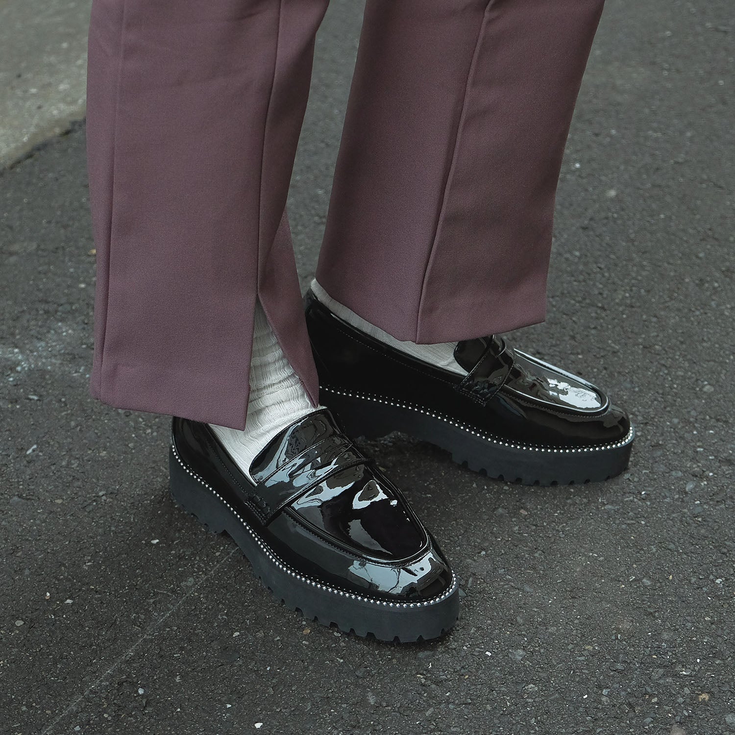 レイン対応とは思えないスタイリッシュなスタッズローファー