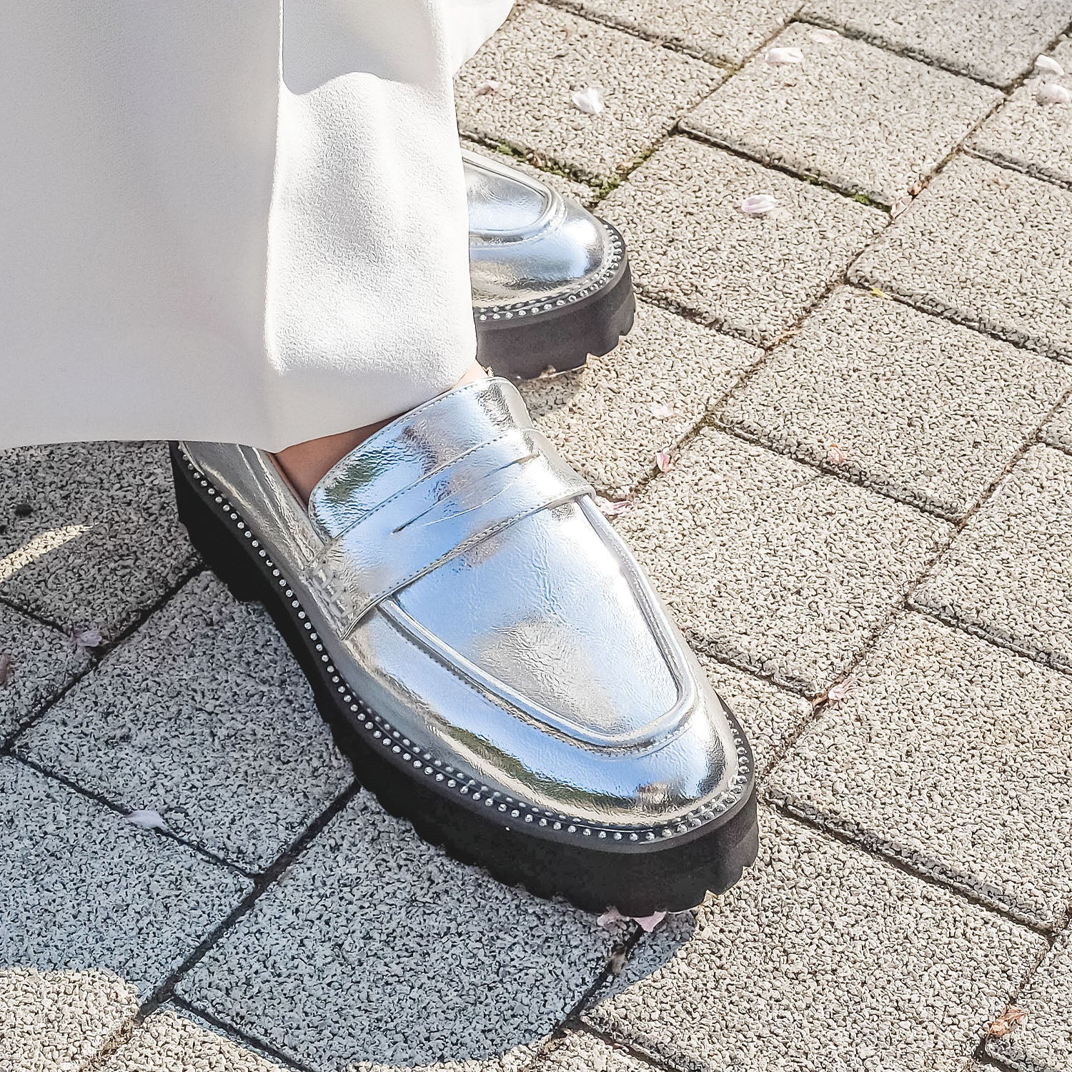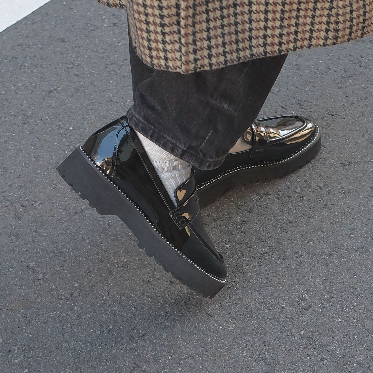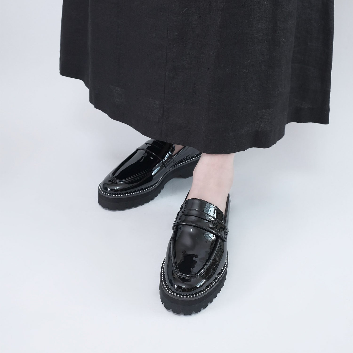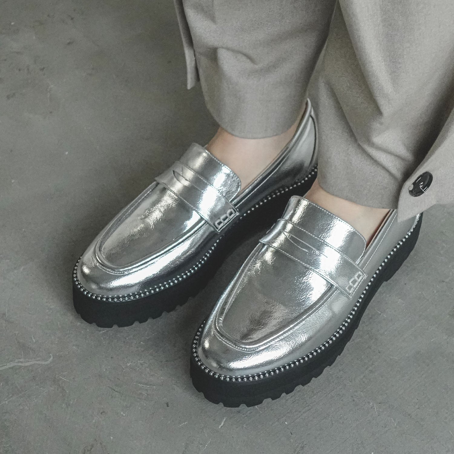 レイン対応とは思えないスタイリッシュなスタッズローファー