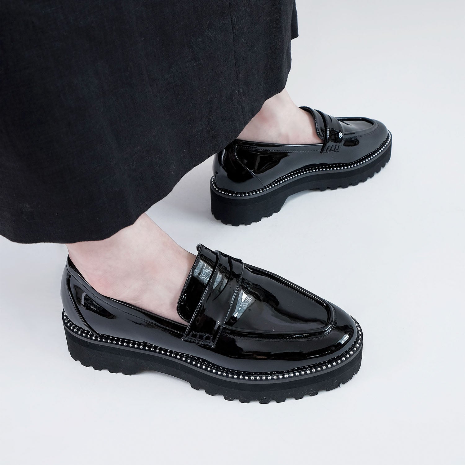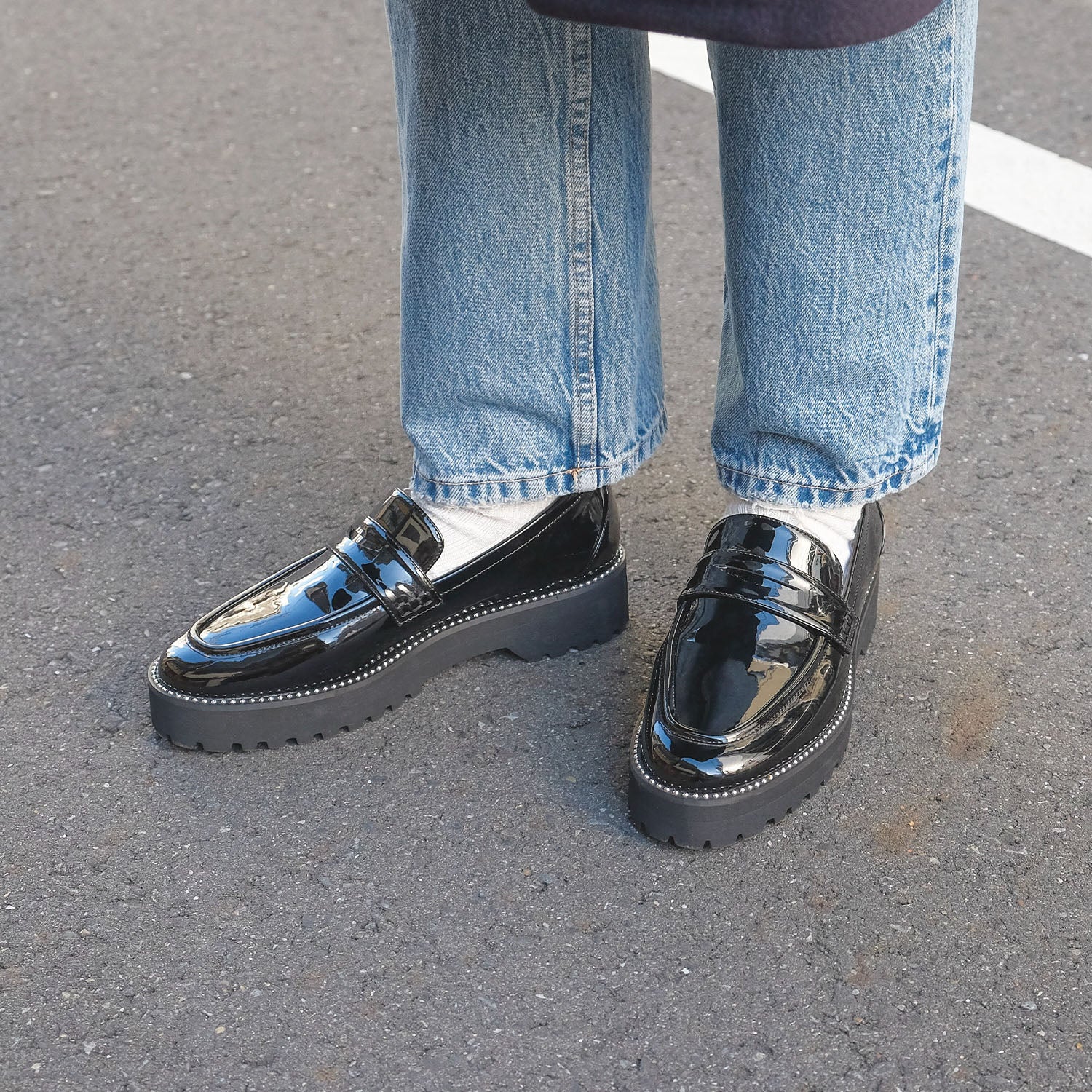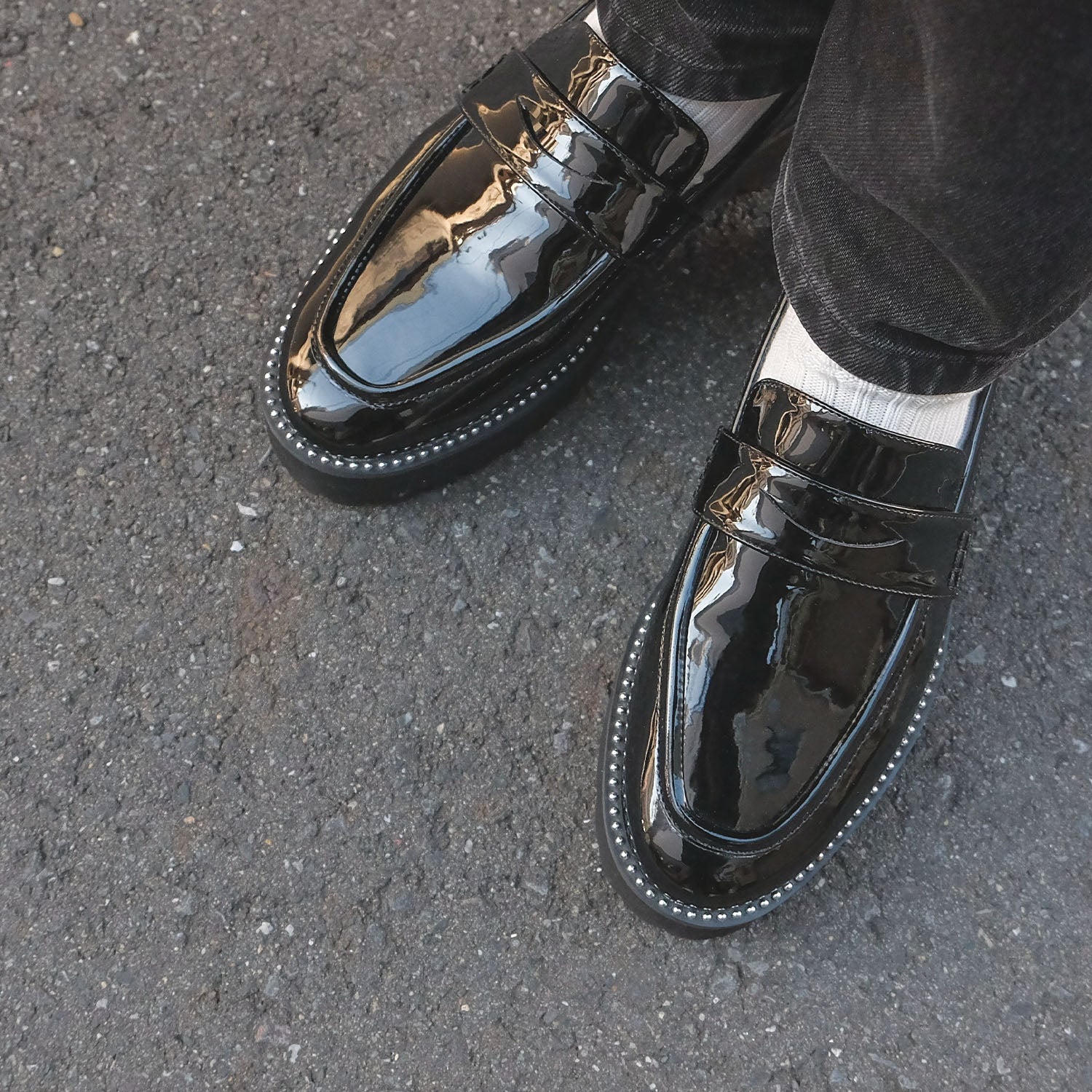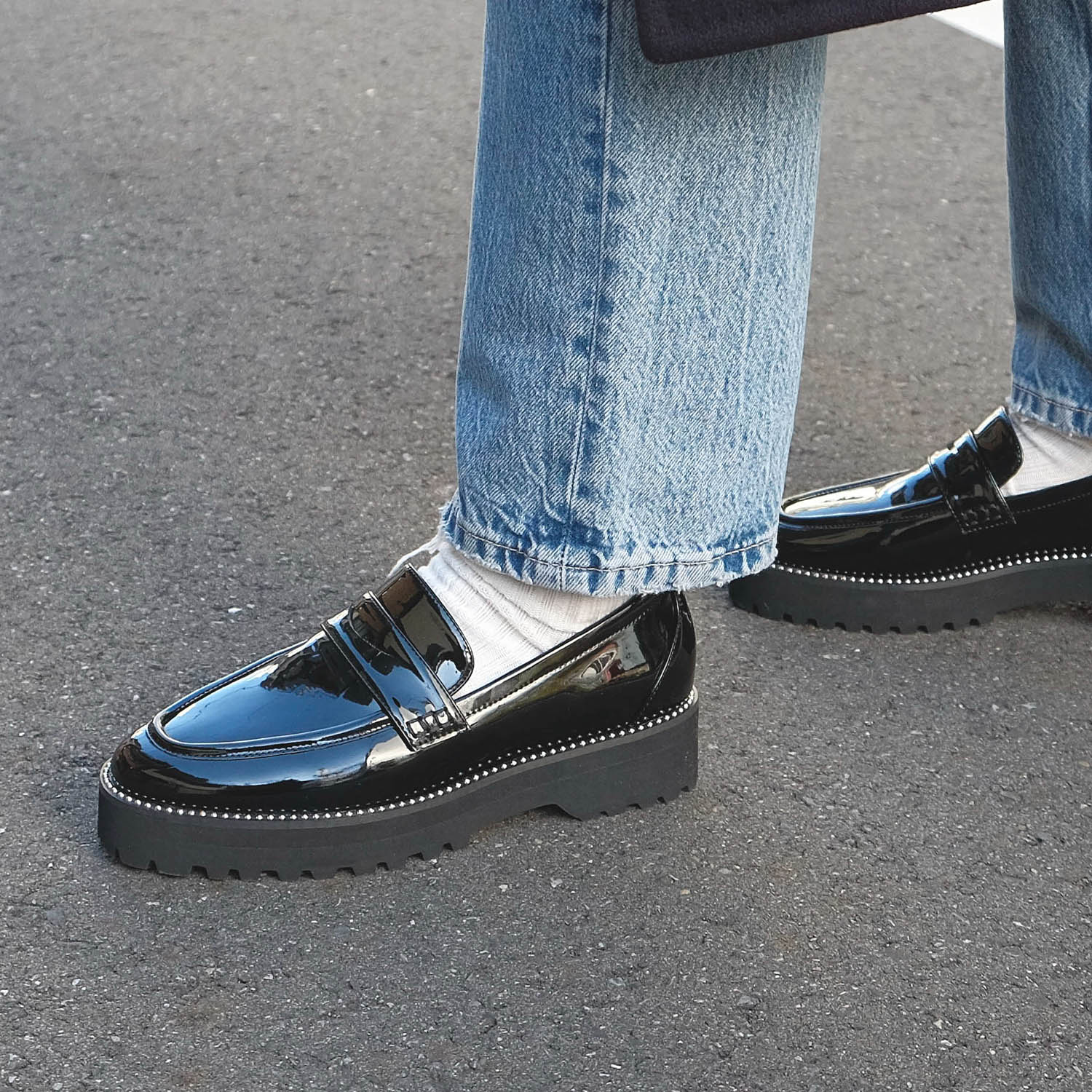 レイン対応とは思えないスタイリッシュなスタッズローファー