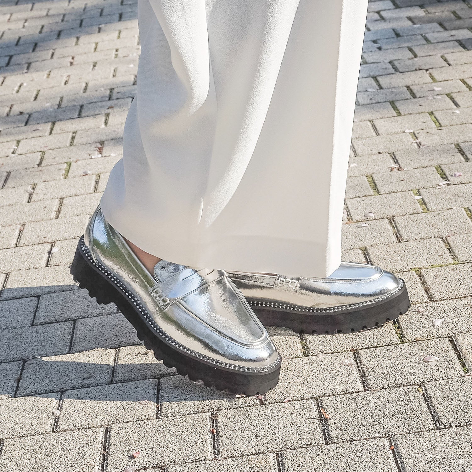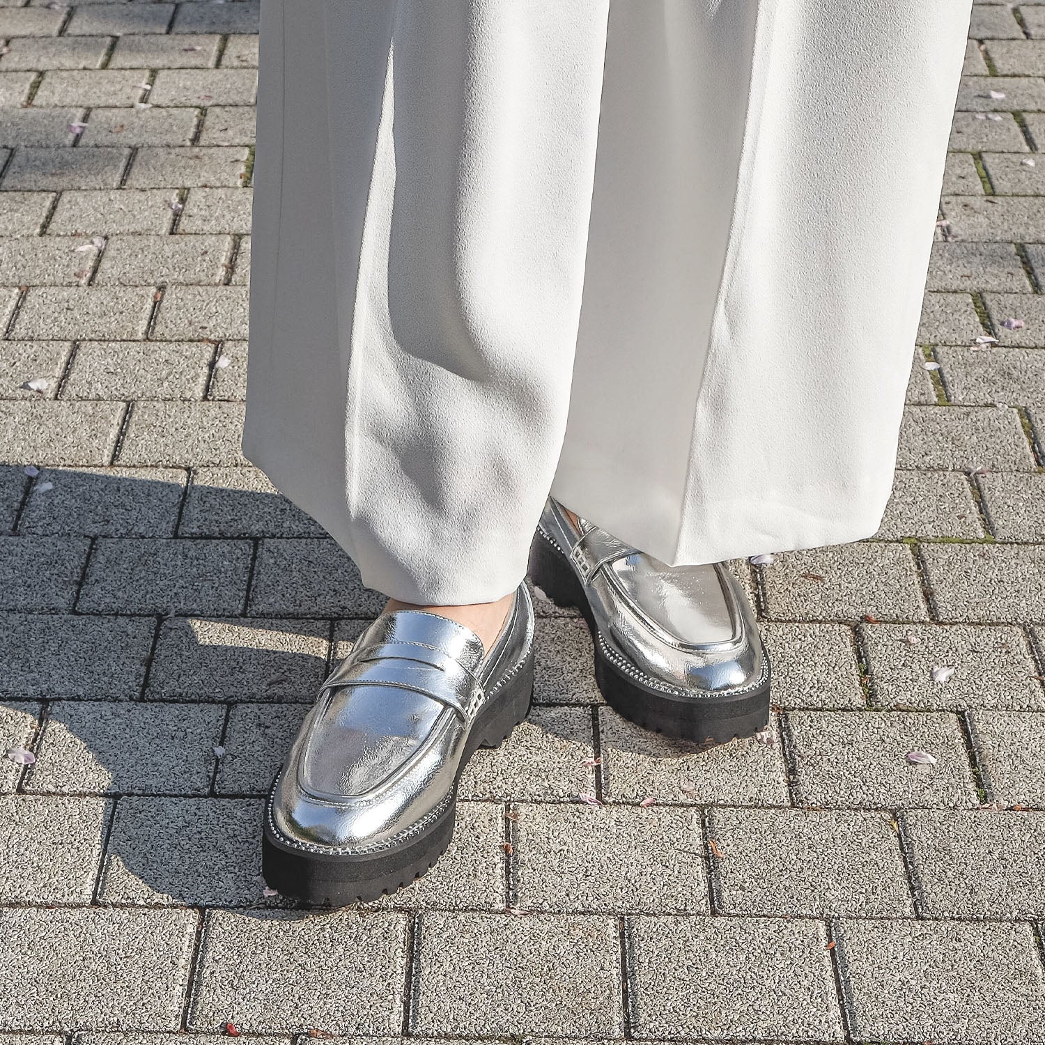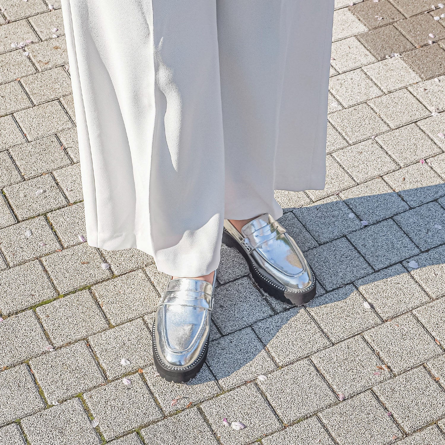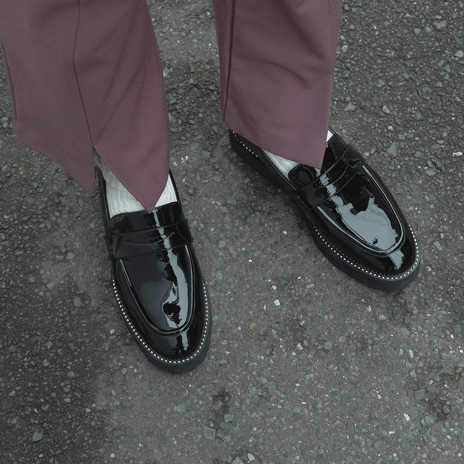 レイン対応とは思えないスタイリッシュなスタッズローファー